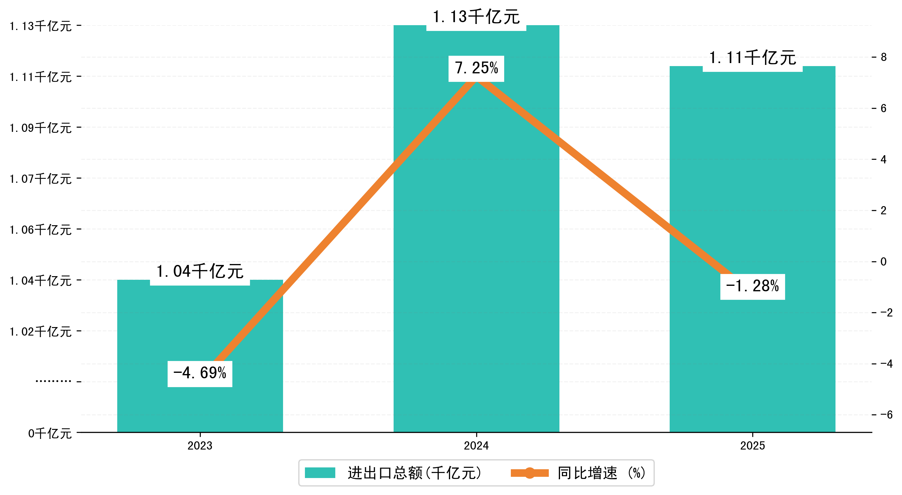 以人民币计,2025年1-3月陕西省进出口总额为1112,7924.2862万元,相比上年同期减少了14,4487.8173万元,同比减少了-1.50%。