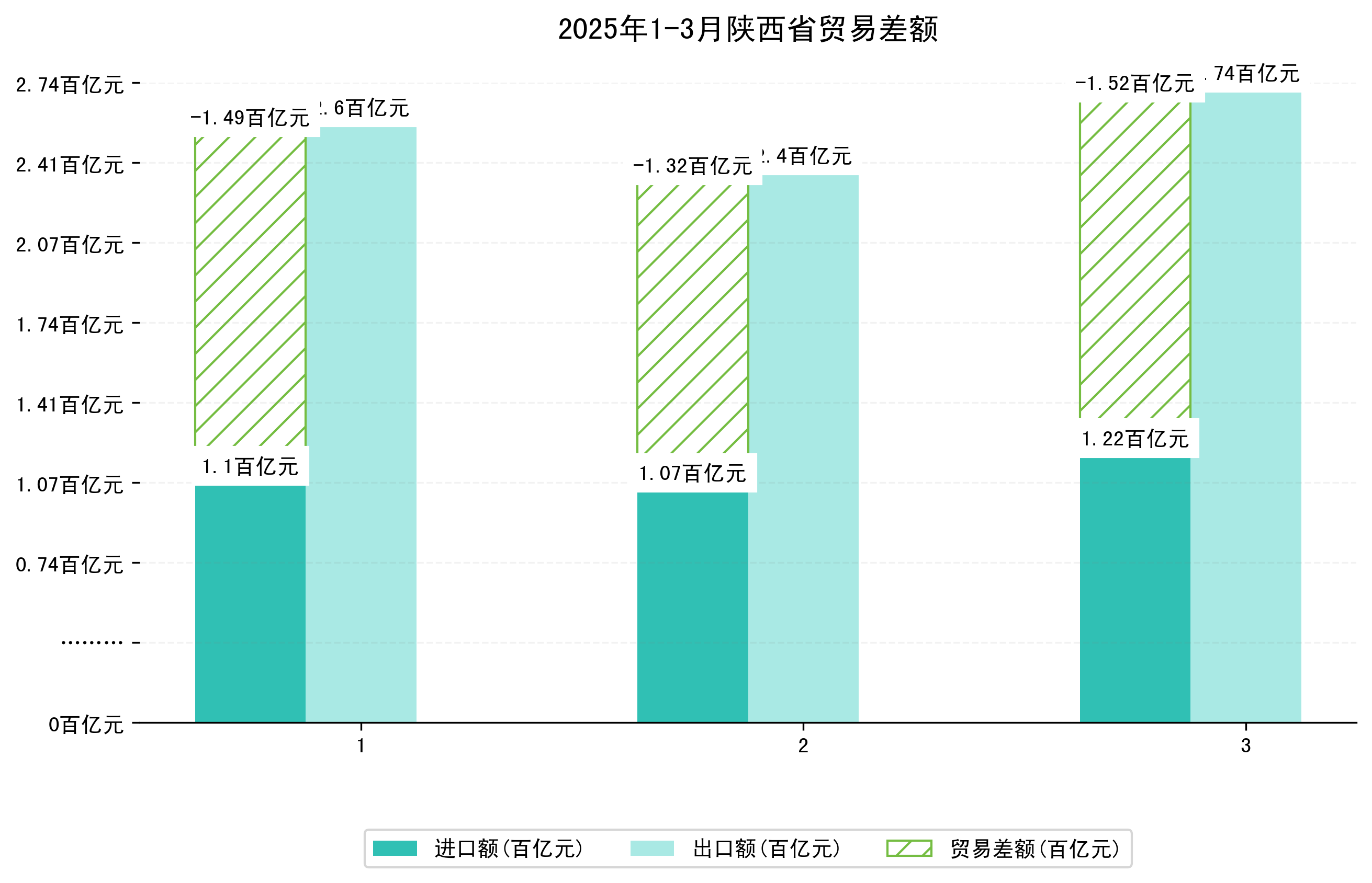 2025年3月陕西省进出口总额及进出口差额统计分析