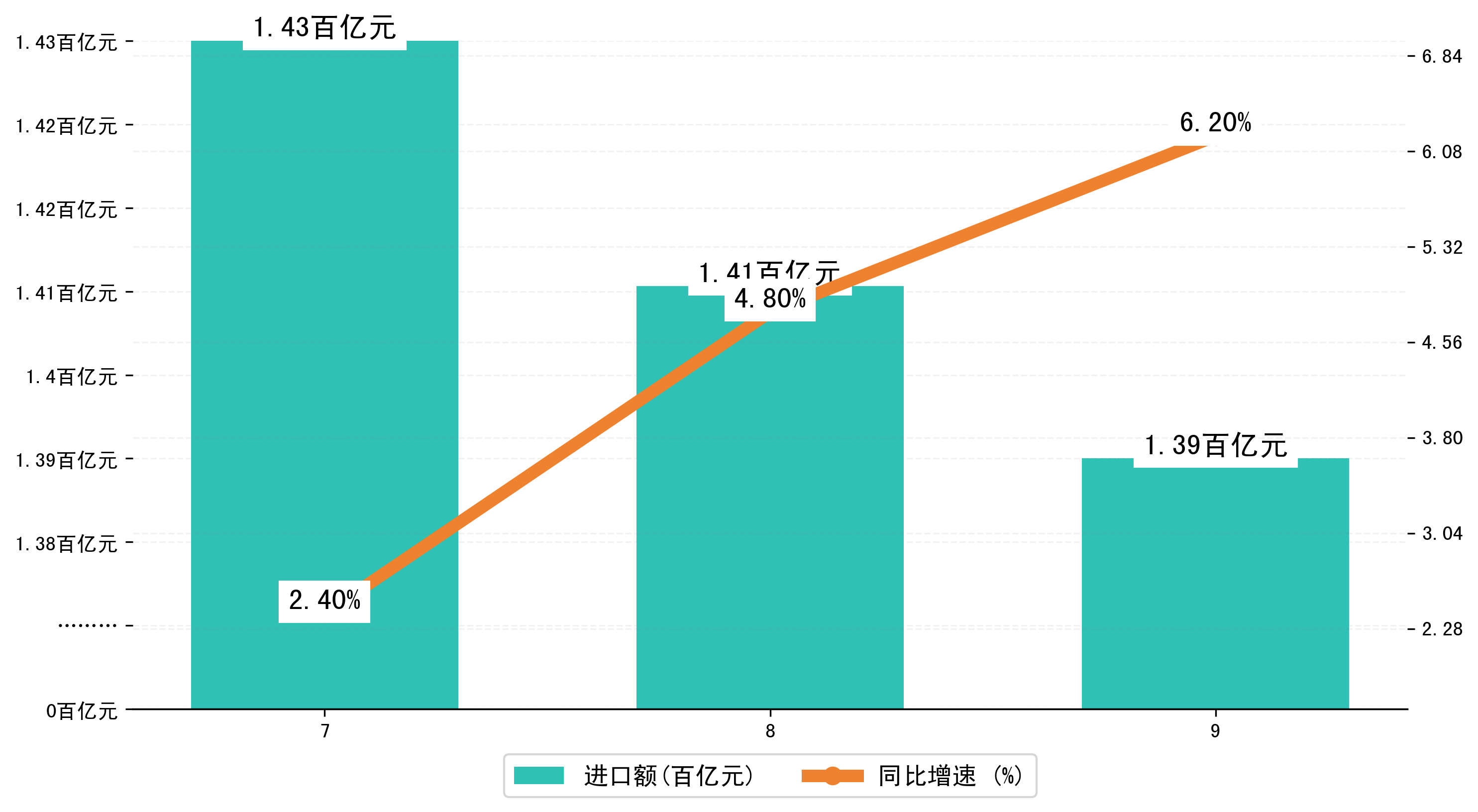 以美元计,2025年1-9月陕西省进口额为161,7699.6737万美元,相比上年同期增加了7,8748.4125万美元,同比增加5.30%。