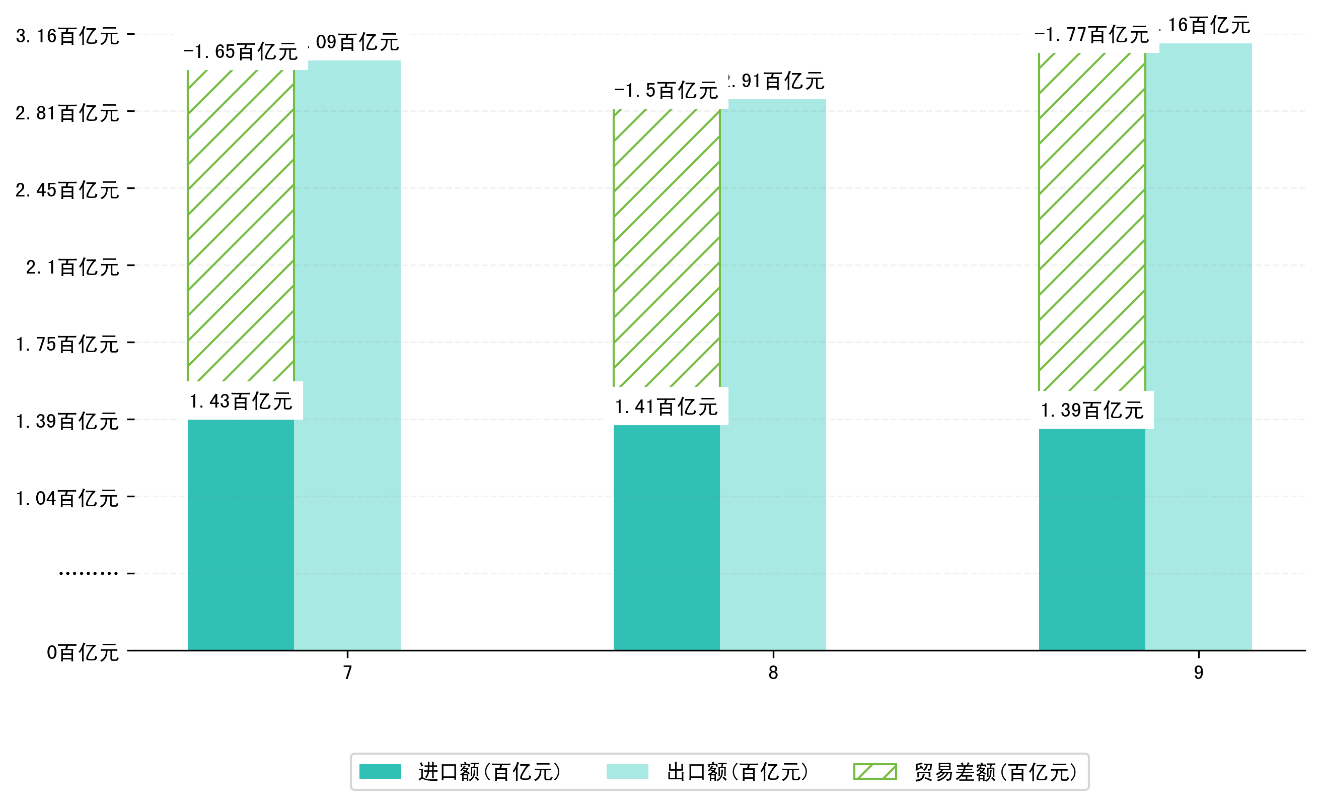 以人民币计,2025年9月陕西省贸易差额为177,3153,0549万元(贸易顺差),相比上月增加了27,4747,9109万元,即3,8973,6960万美元;相比上年同期增加了47,3435,3326万元,同比增加36.43%。