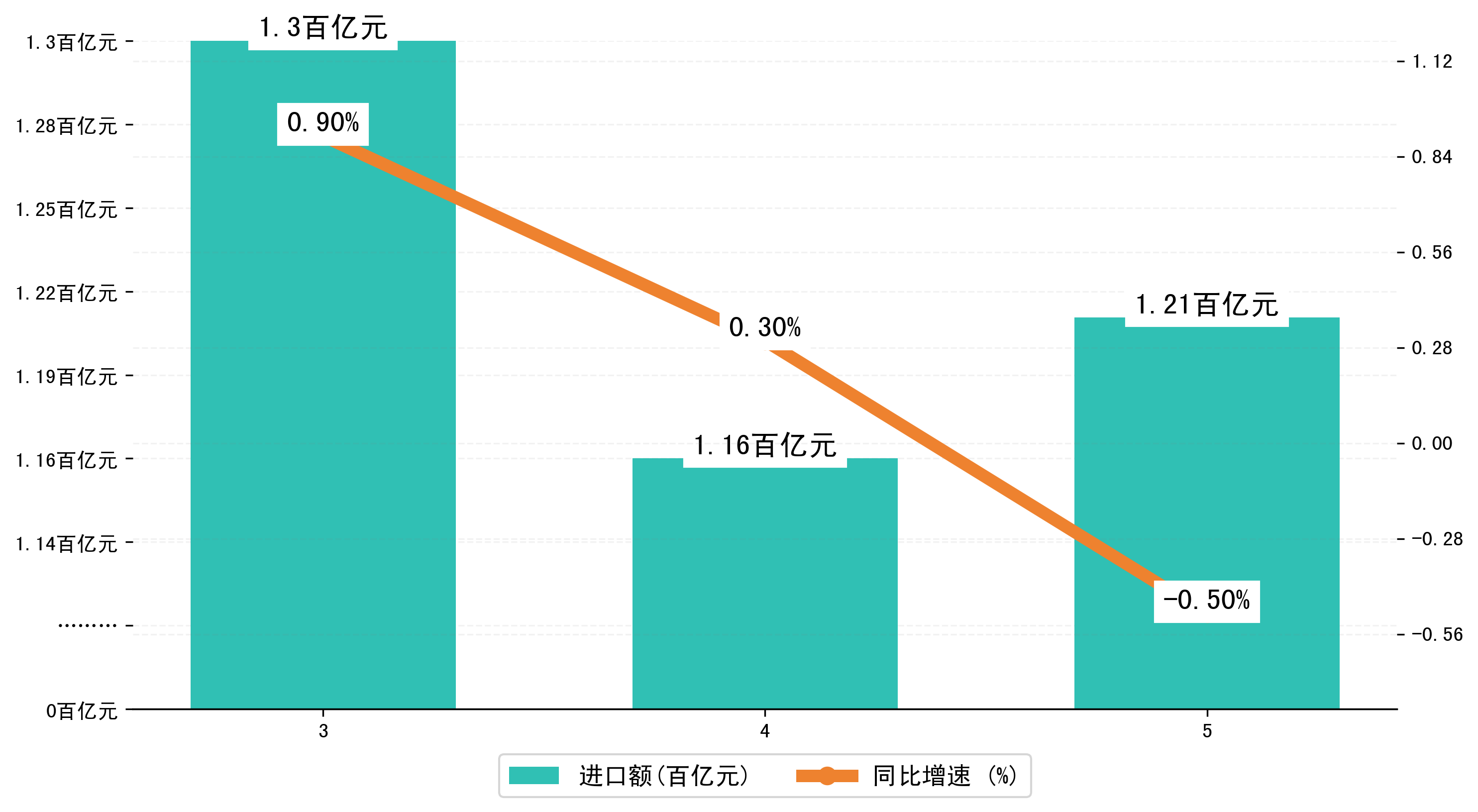 以人民币计,2024年5月陕西省进口额为121,1795.6332万元,相比上月增加了4,6983.5769万元;相比上年同期减少了5,7113.7714万元,同比减少了-0.50%。