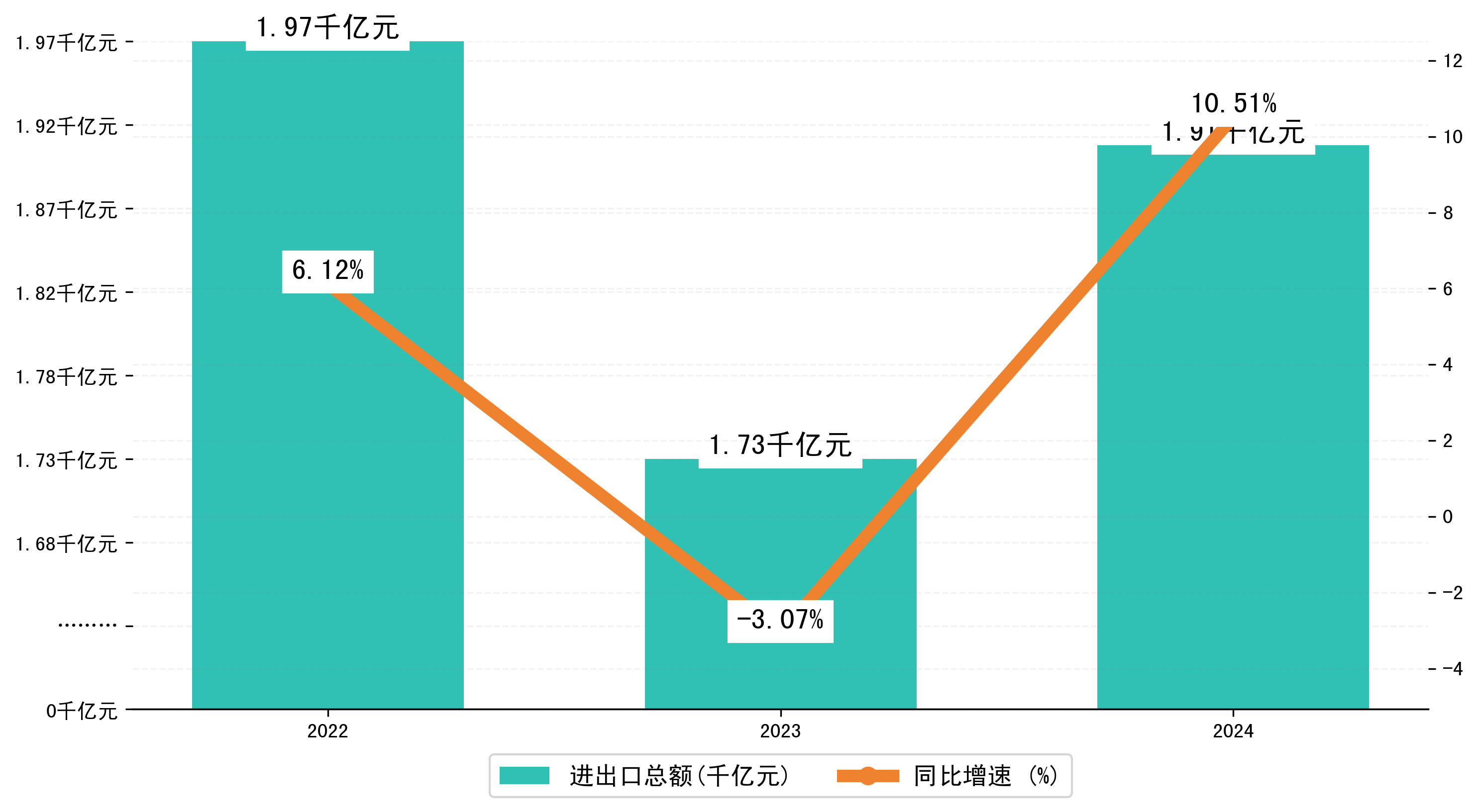 以人民币计,2024年1-5月陕西省进出口总额为1908,3061.2318万元,相比上年同期增加了181,4823.4747万元,同比增加了11.50%。