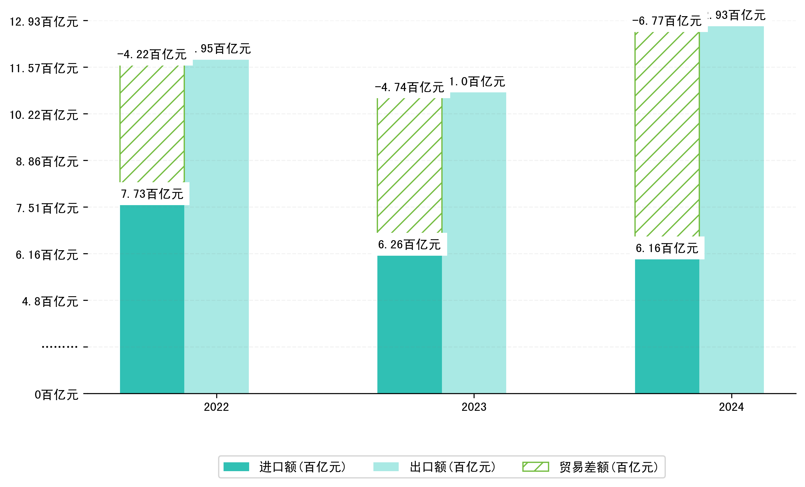 以美元计,2024年1-5月陕西省进口额为86,6477.5381万美元,相比上年同期减少了4,5799.5223万美元,同比减少-3.80%。