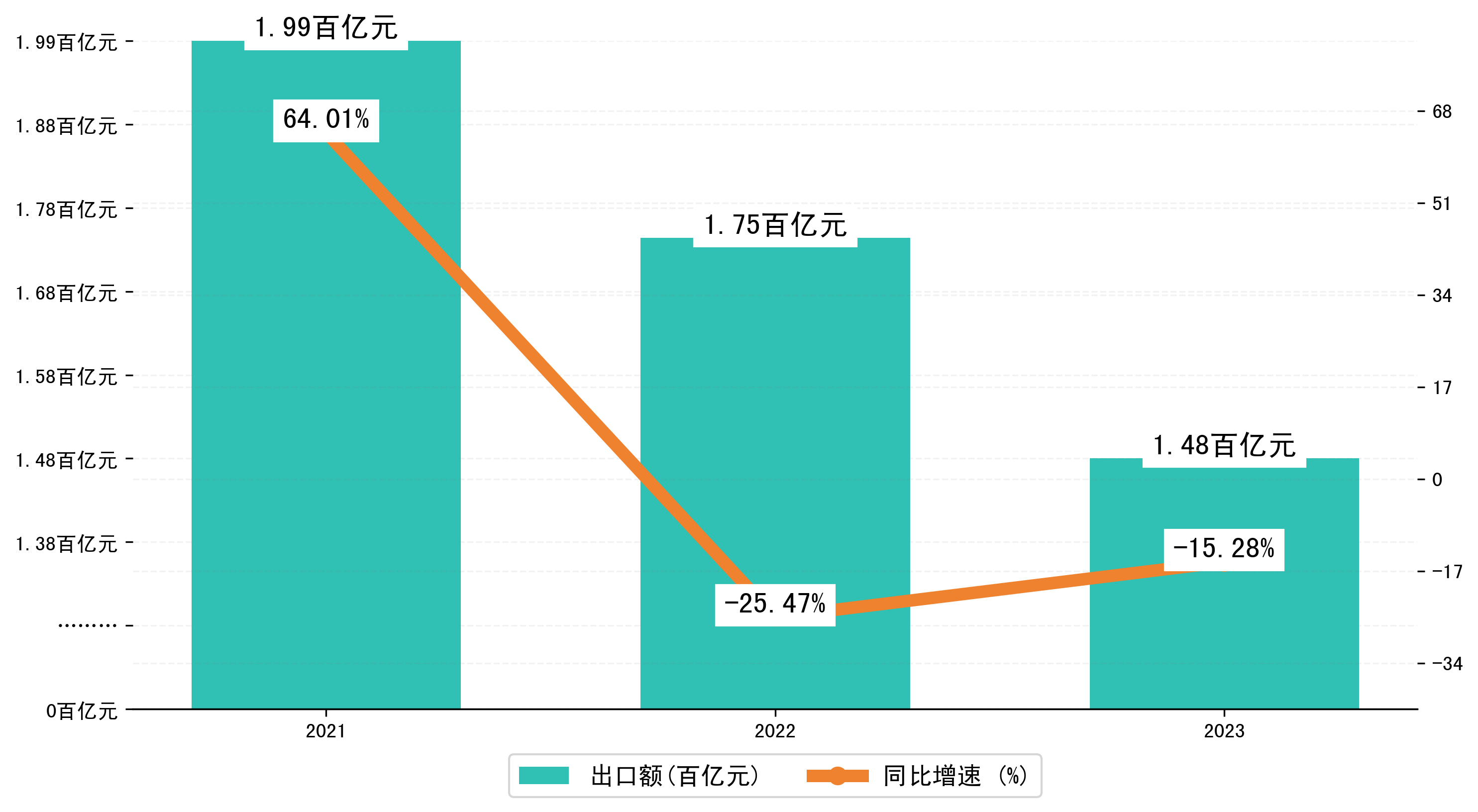 以人民币计,2023年1-2月山西省出口额为147,9515.6108万元,相比上年同期减少了26,6802.8016万元,同比减少了-14.50%。