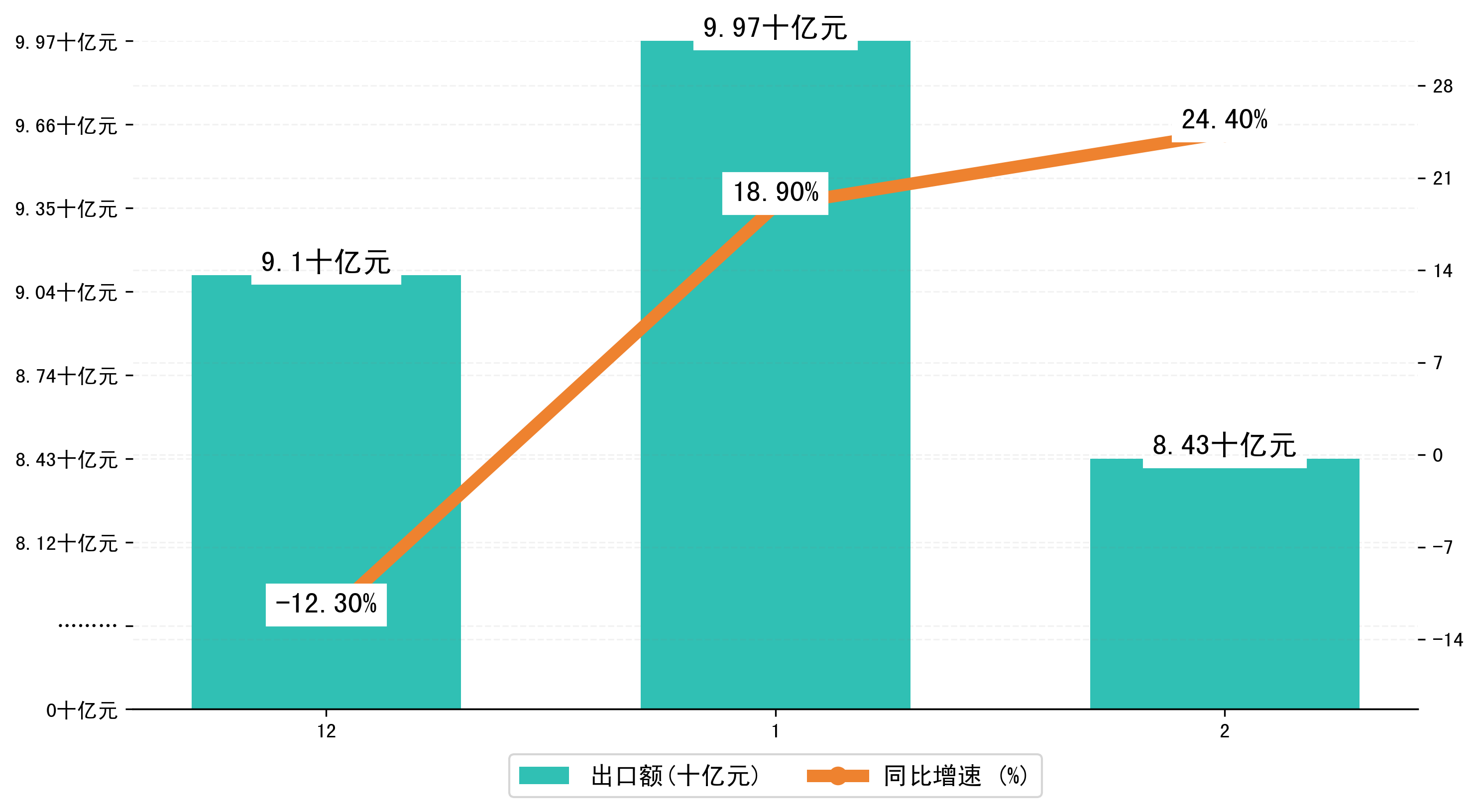一、2024年2月山西省单月出口总额及进出口差额统计分析