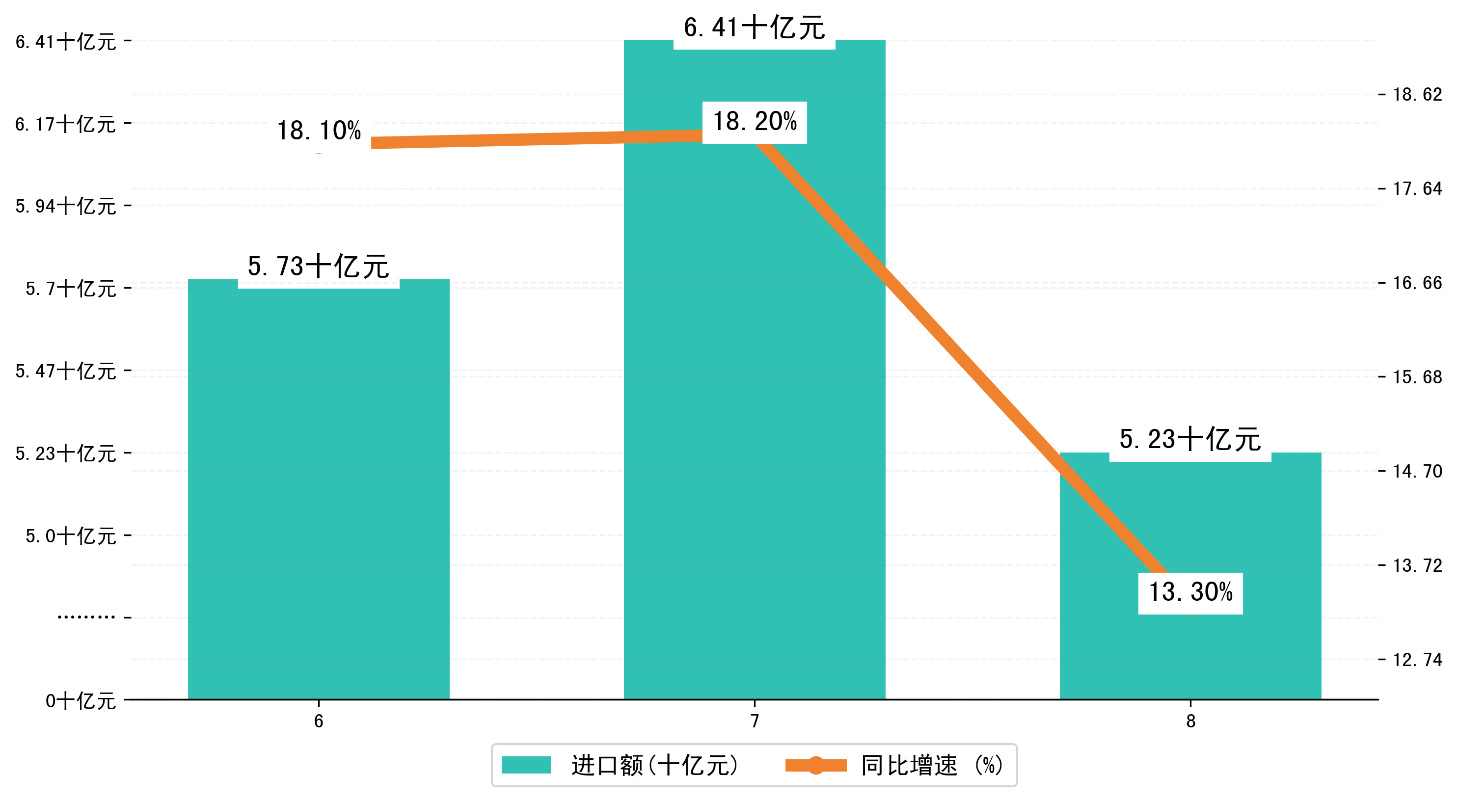 以人民币计,2024年1-8月山西省进口额为454,1606.9988万元,相比上年同期增加了50,6585.692万元,同比增加了13.30%。