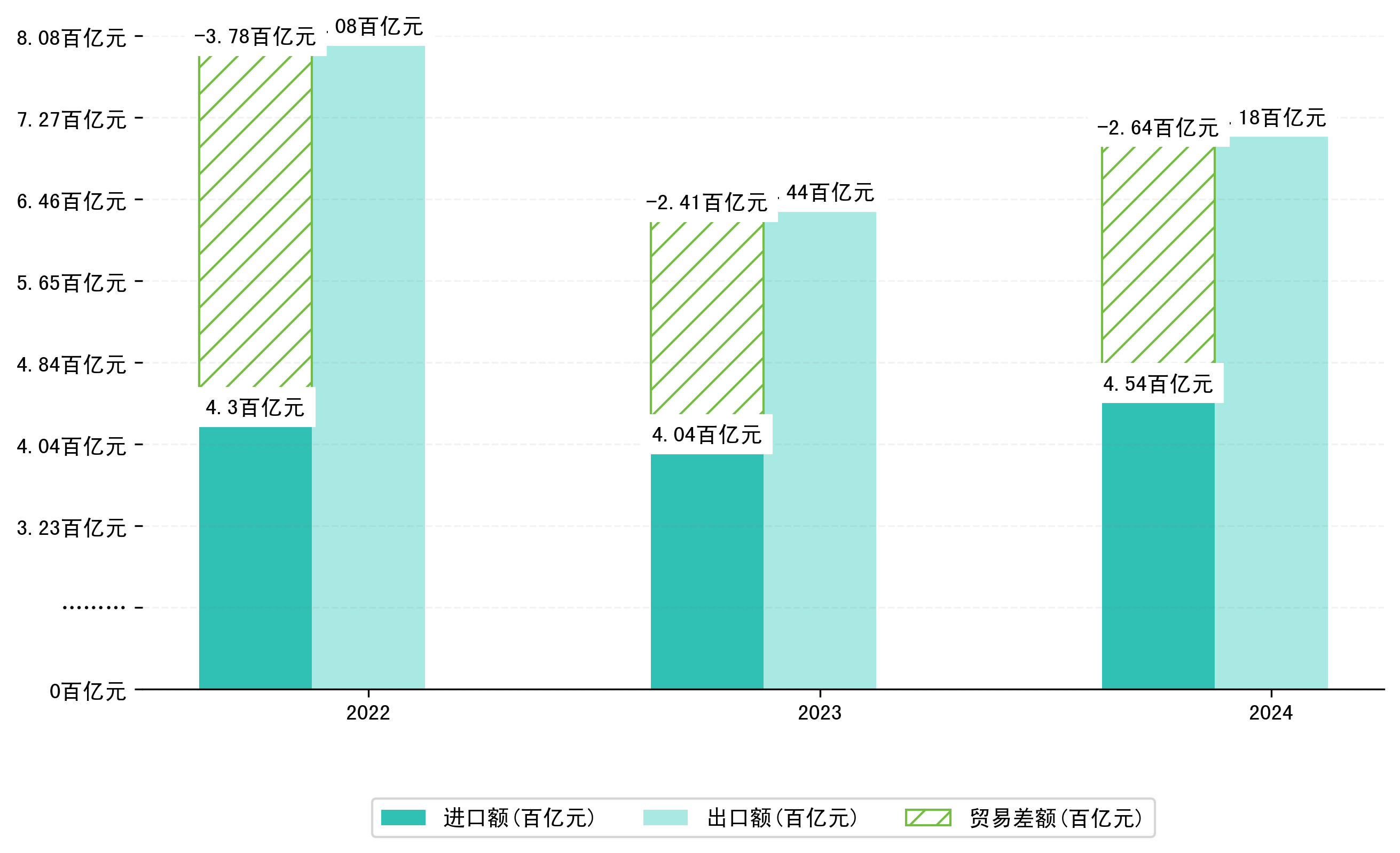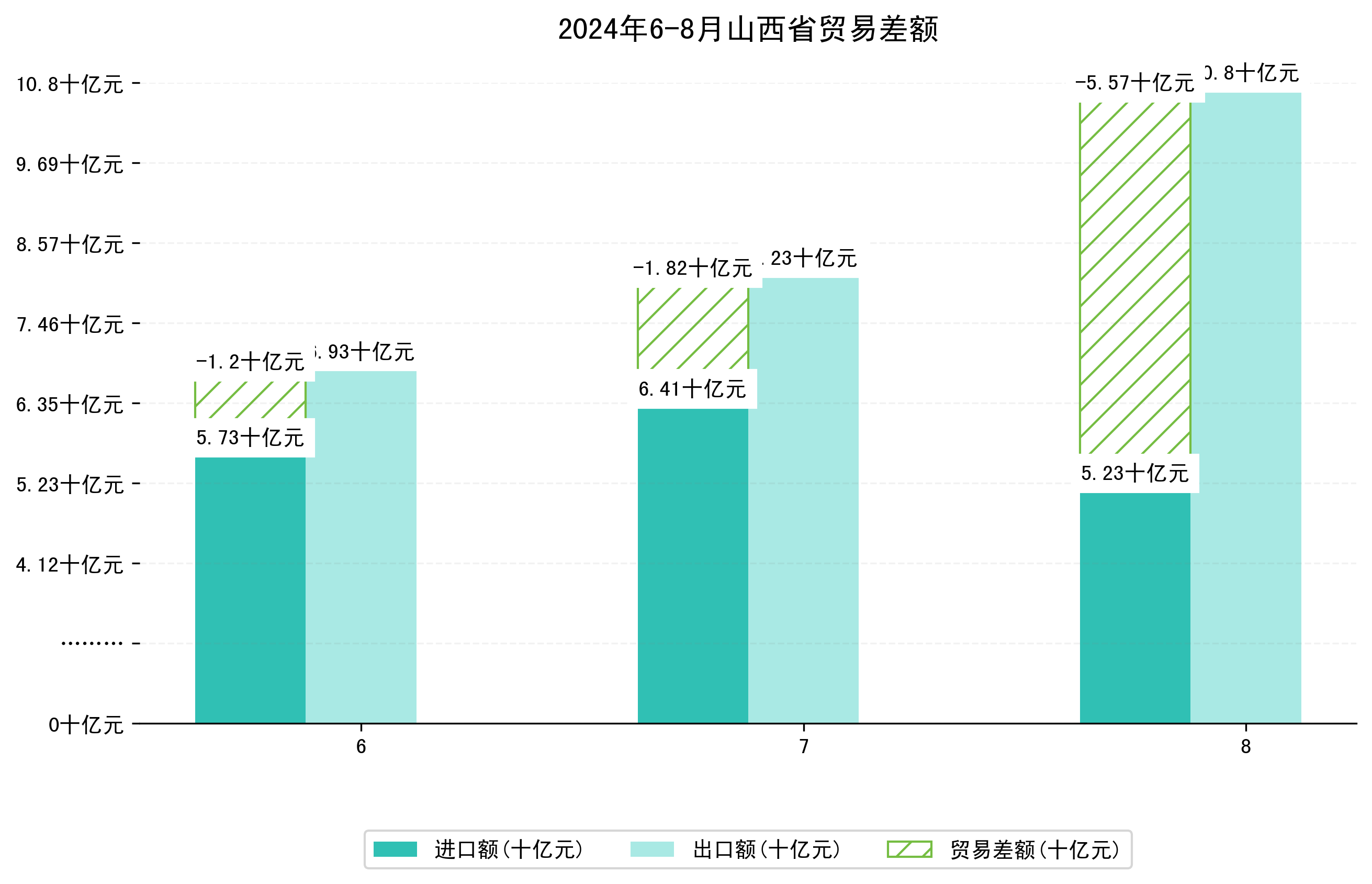 以人民币计,2024年1-8月山西省贸易差额为264,0404,2040万元(贸易顺差),相比上年同期增加了23,4762,9832万元,同比增加9.76%。
