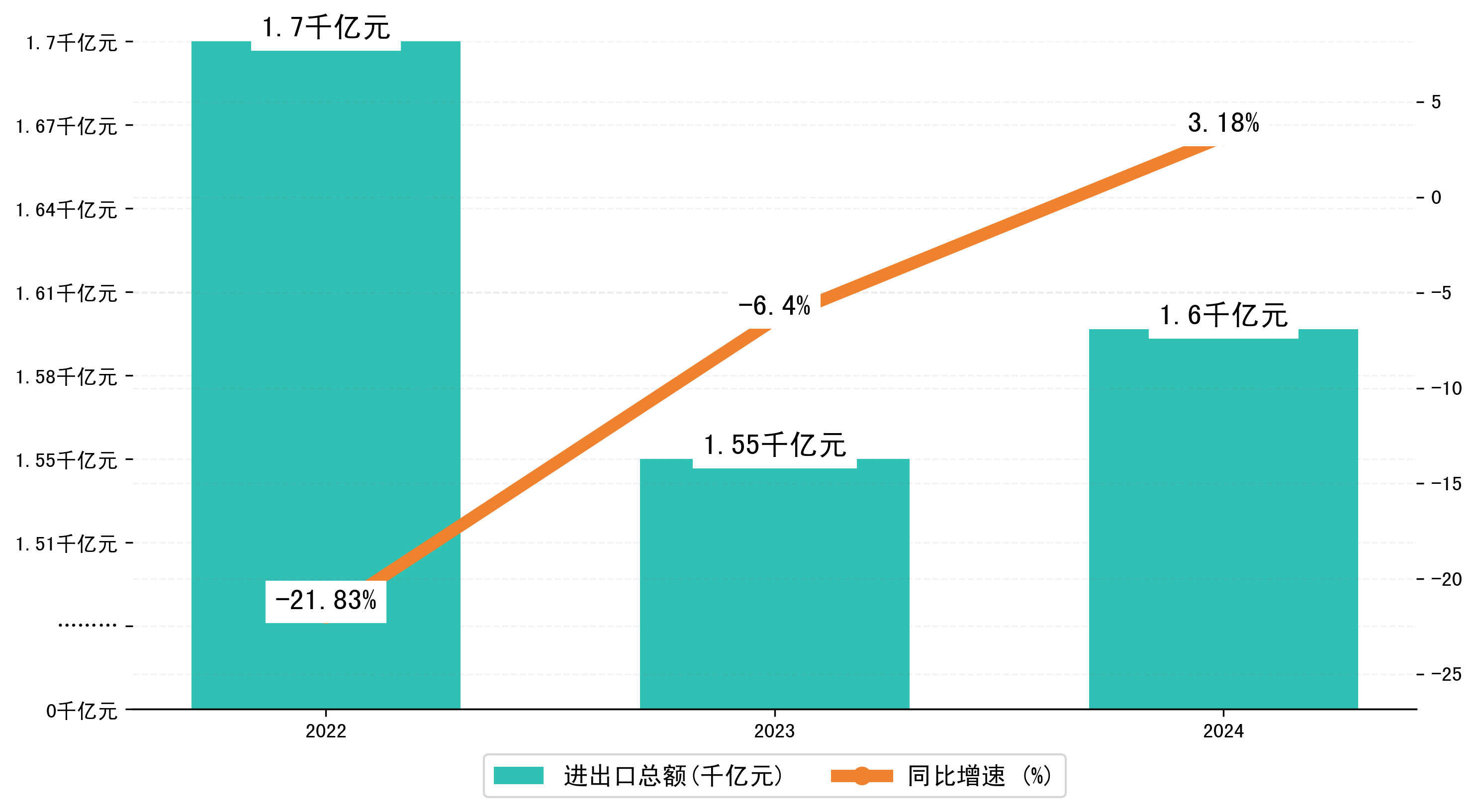 以人民币计,2024年1-11月山西省进出口总额为1595,7605.6557万元,相比上年同期增加了49,1508.0298万元,同比增加了3.30%。