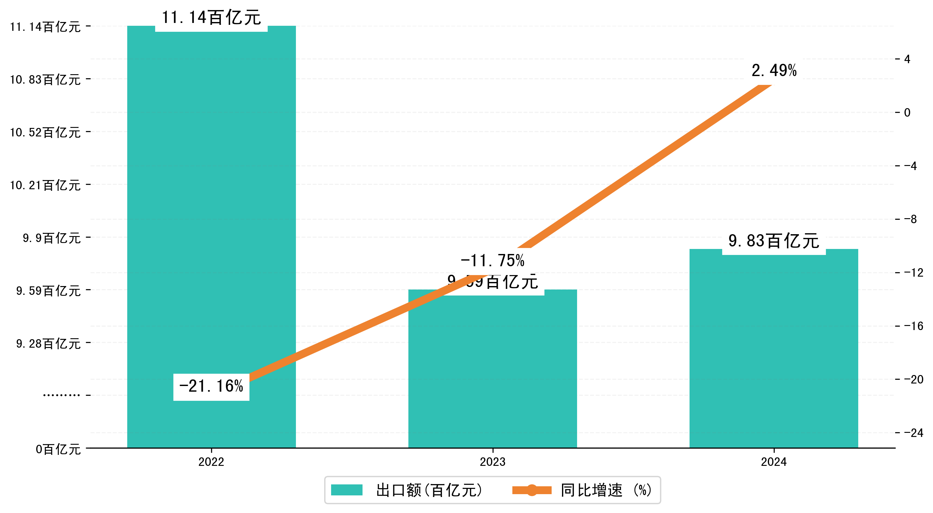 以人民币计,2024年1-11月山西省出口额为983,2321.0566万元,相比上年同期增加了23,9243.8999万元,同比增加了2.50%。