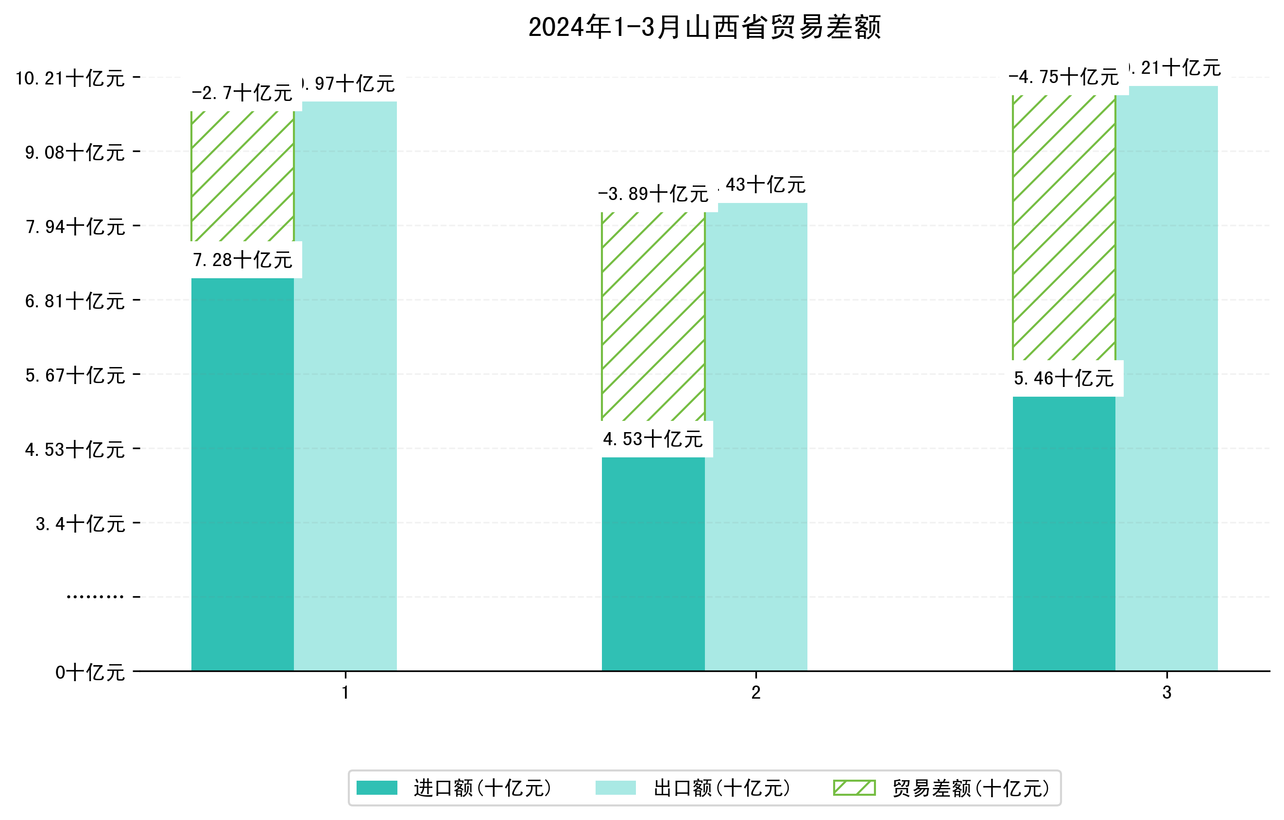 2024年3月山西省进出口总额及进出口差额统计分析