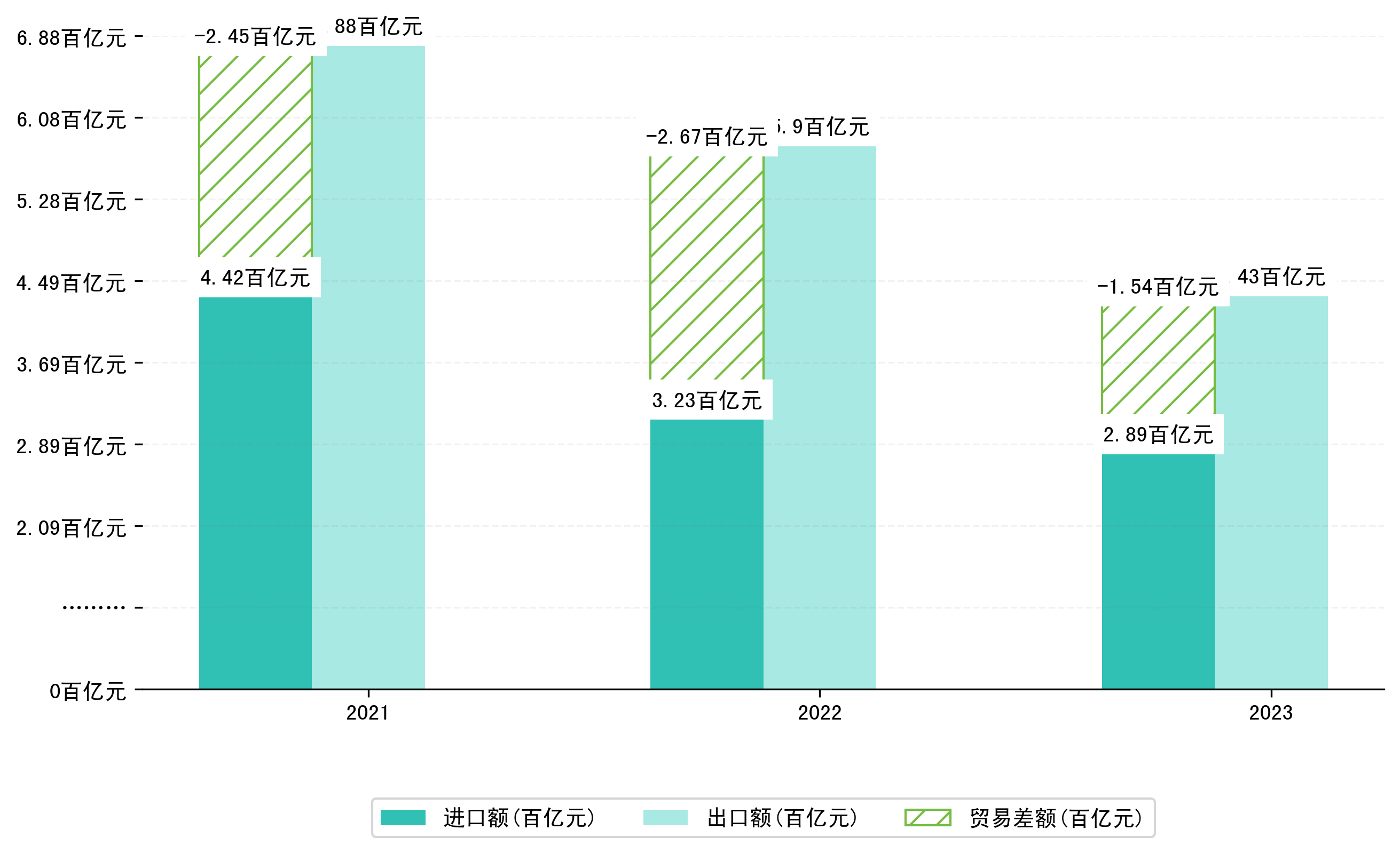 以美元计,2023年1-6月山西省贸易差额为22,4027,9049万美元(贸易顺差),相比上年同期减少了18,8789,4585万美元,同比减少-45.73%。