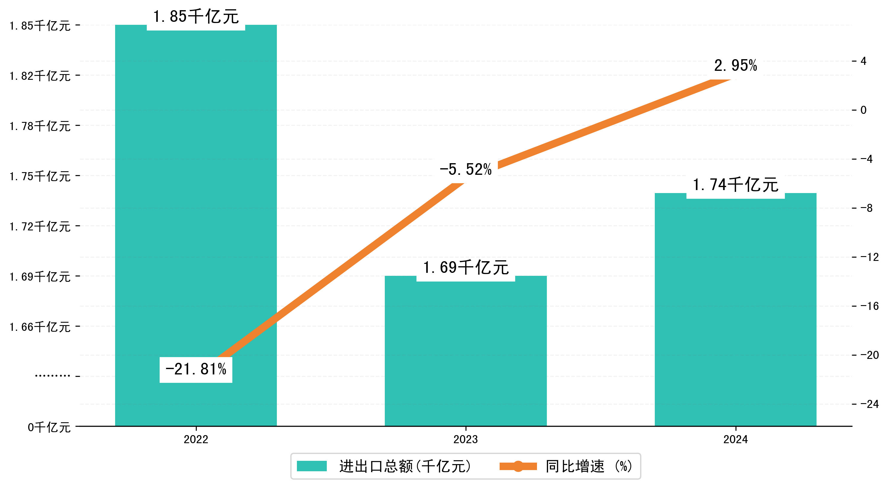 以人民币计,2024年1-12月山西省进出口总额为1743,7640.6926万元,相比上年同期增加了50,0397.2187万元,同比增加了3.10%。