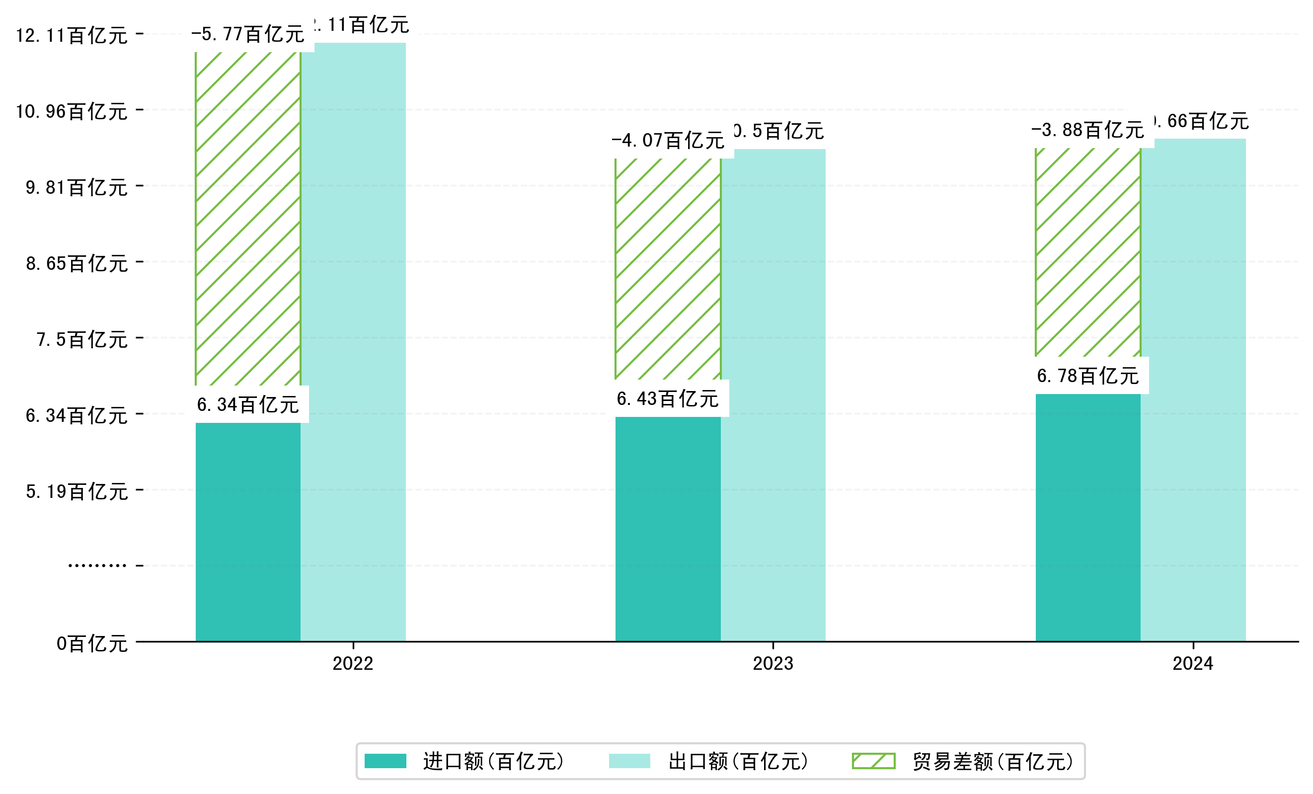 以人民币计,2024年1-12月山西省贸易差额为387,6545,2065万元(贸易顺差),相比上年同期减少了19,3101,3642万元,同比减少-4.74%。