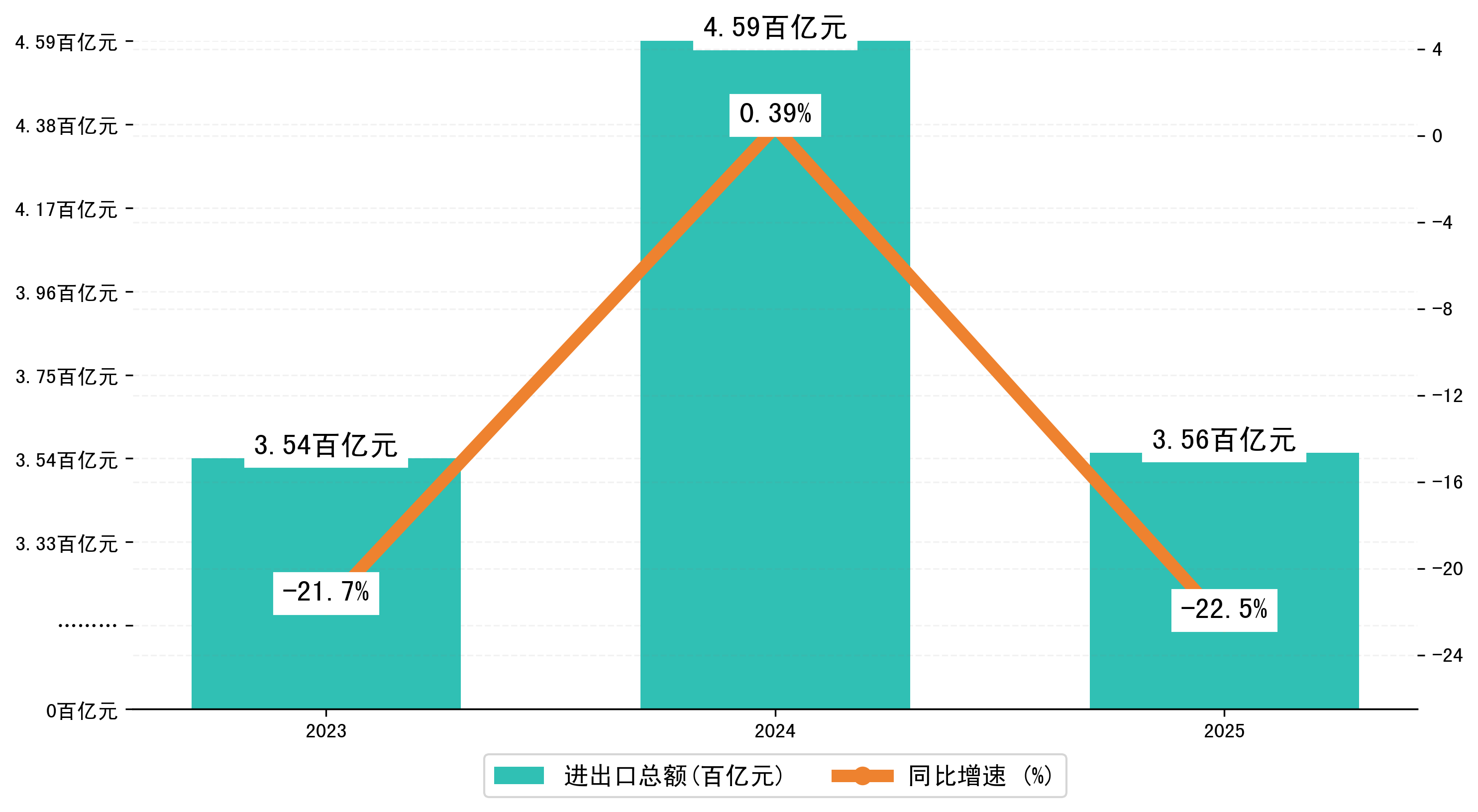 以人民币计,2025年1-3月山西省进出口总额为355,5206.9223万元,相比上年同期减少了103,2329.432万元,同比减少了-22.80%。