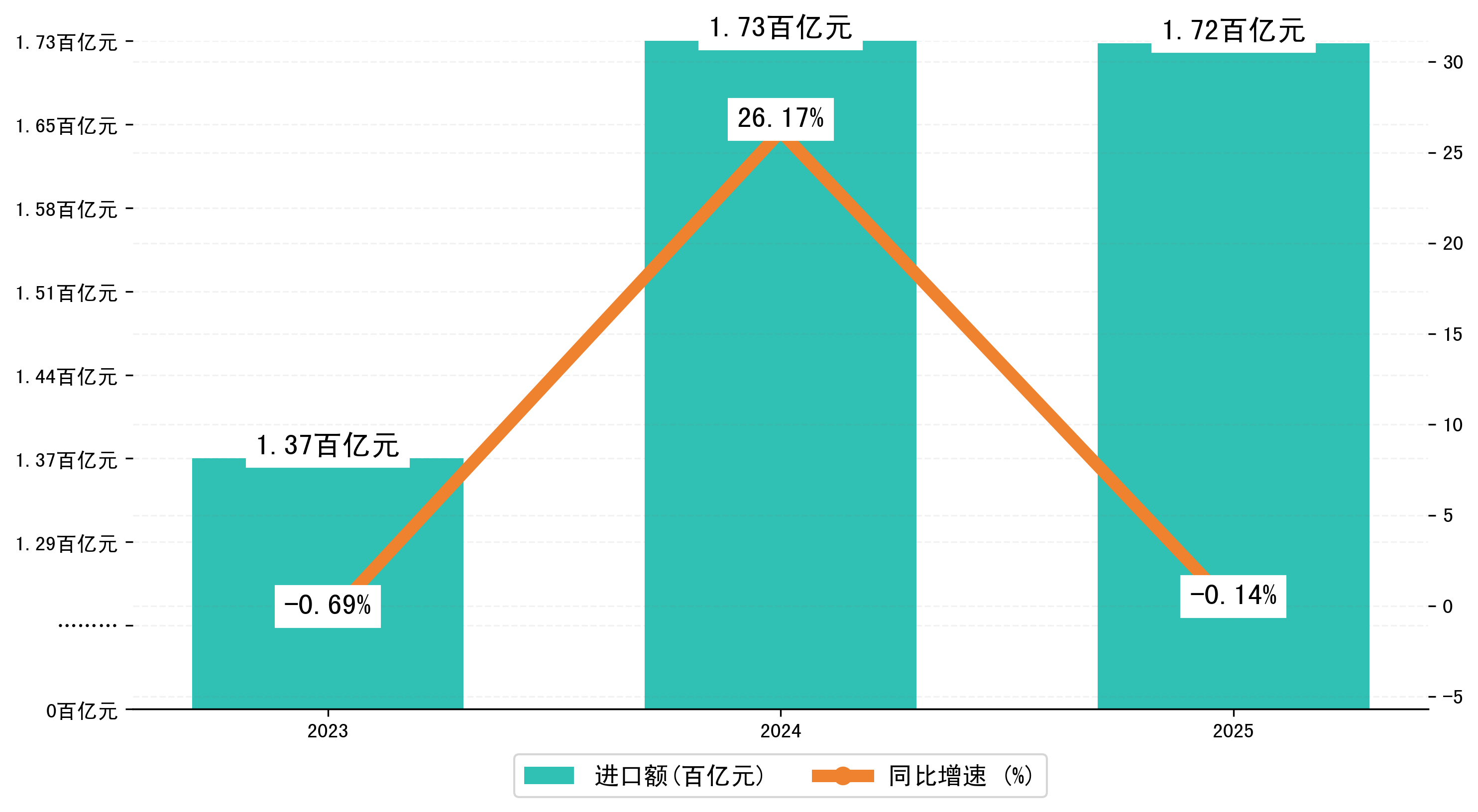 以人民币计,2025年1-3月山西省进口额为172,4046.4467万元,相比上年同期减少了2399.5631万元,同比减少了-1.50%。