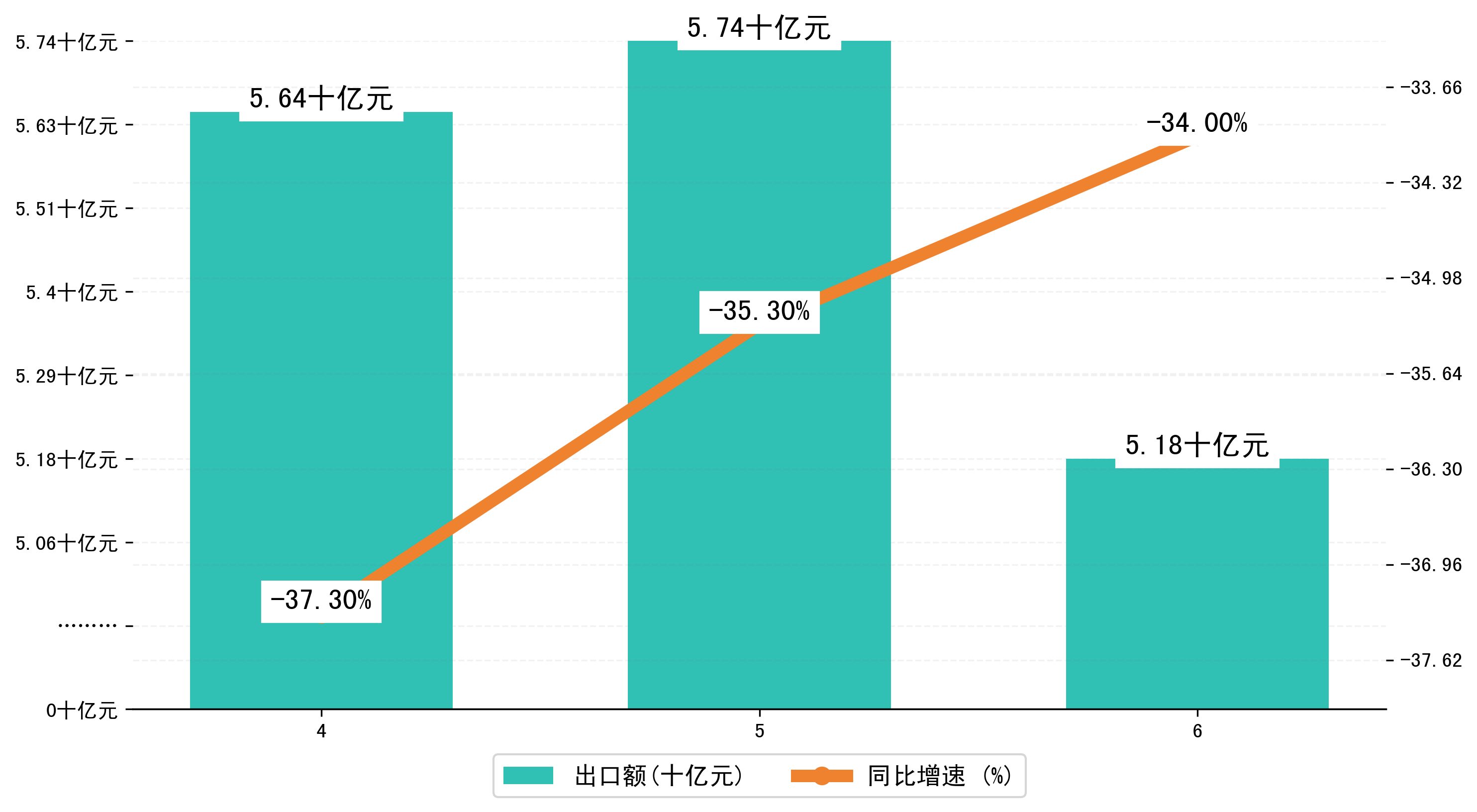 以人民币计,2025年6月山西省出口额为51,7567.1438万元,相比上月减少了5,6345.9939万元;相比上年同期减少了17,5188.0013万元,同比减少了-34.00%。
