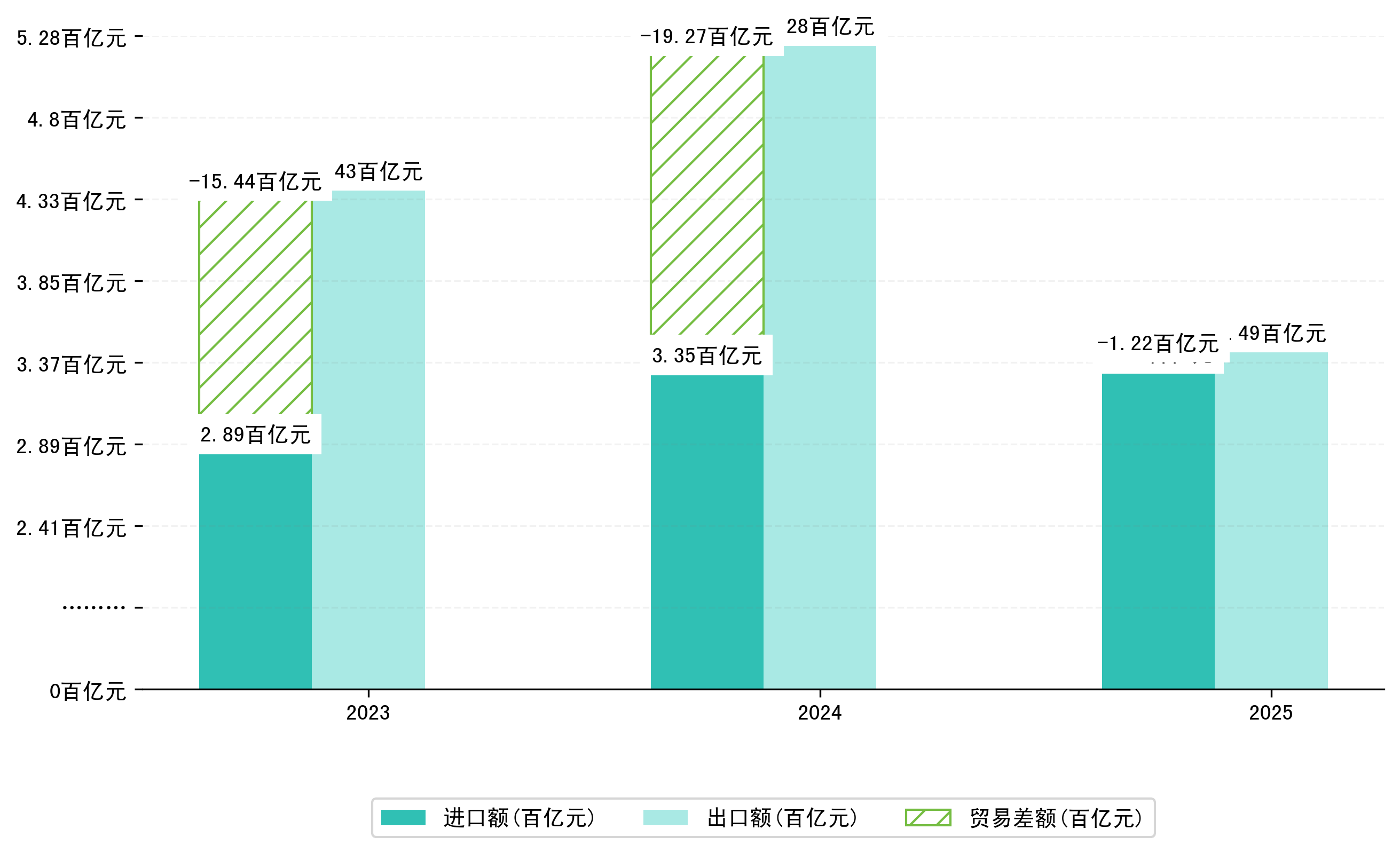 以美元计,2025年1-6月山西省贸易差额为1,6919,0518万美元(贸易顺差),相比上年同期减少了25,4418,9244万美元,同比减少-93.76%。