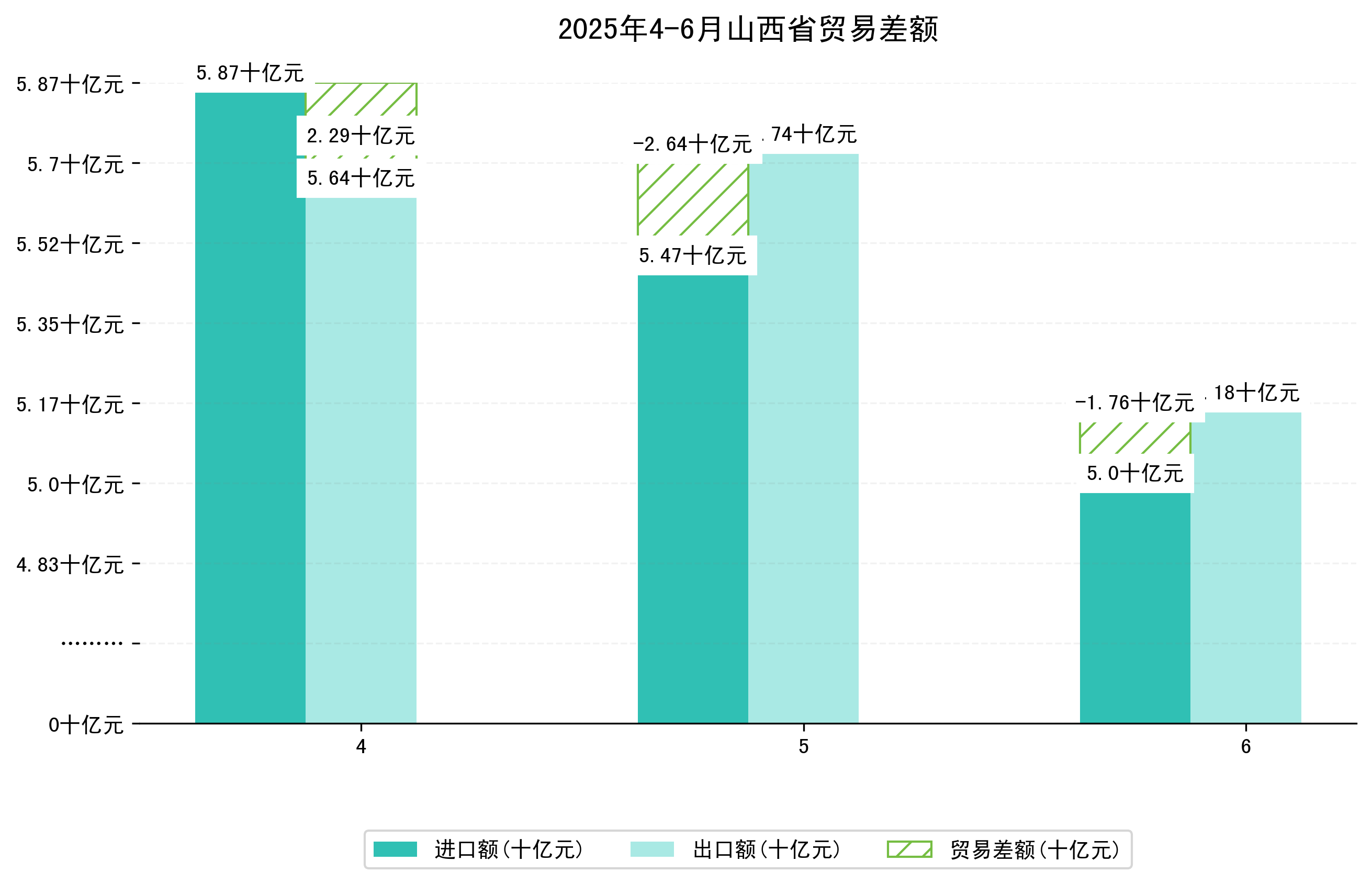 一、2025年6月山西省单月出口总额及进出口差额统计分析