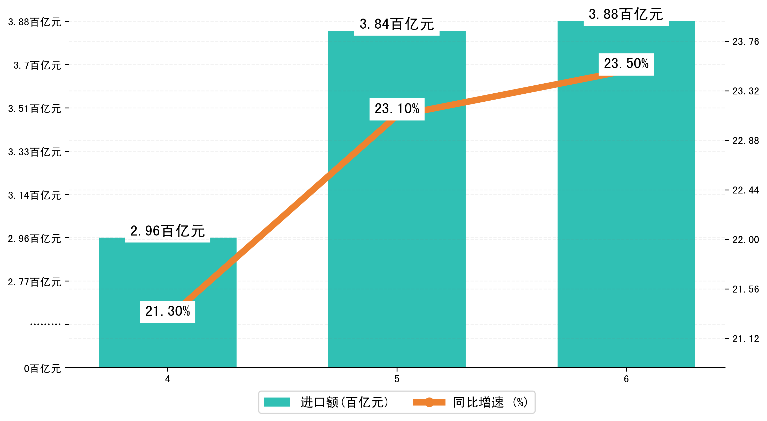 以人民币计,2024年6月四川省进口额为388,1283.5566万元,相比上月增加了4,0929.9422万元;相比上年同期增加了76,0993.41万元,同比增加了23.50%。