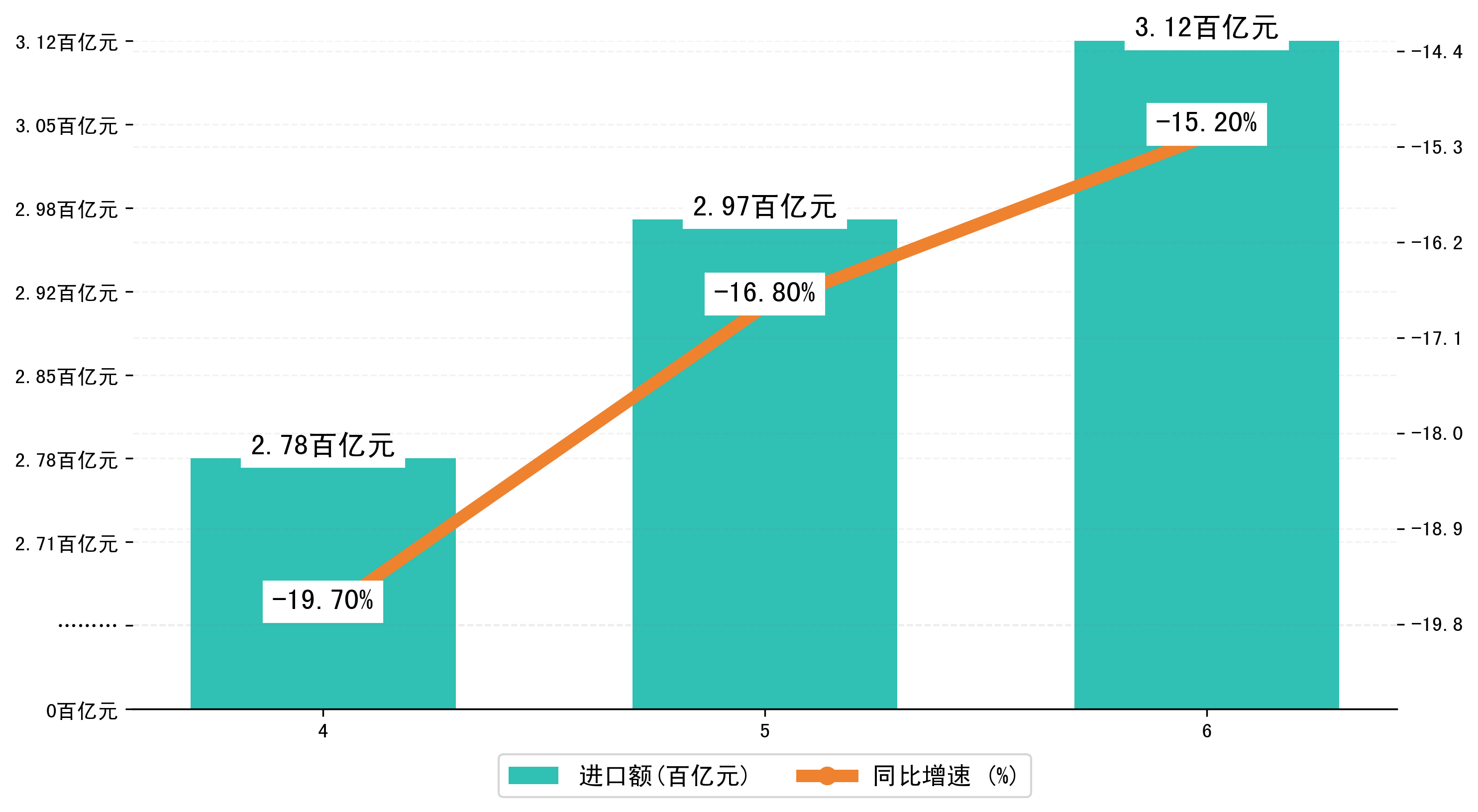 以人民币计,2023年6月四川省进口额为312,0290.1466万元,相比上月增加了14,5629.5189万元;相比上年同期减少了25,4016.0842万元,同比减少了-15.20%。