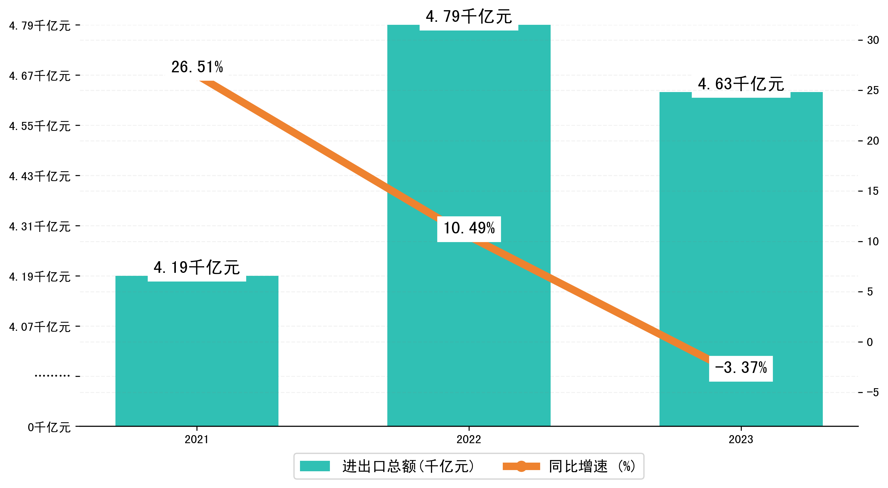 以人民币计,2023年1-6月四川省进出口总额为4628,9969.2642万元,相比上年同期减少了161,2779.2839万元,同比减少了-2.90%。