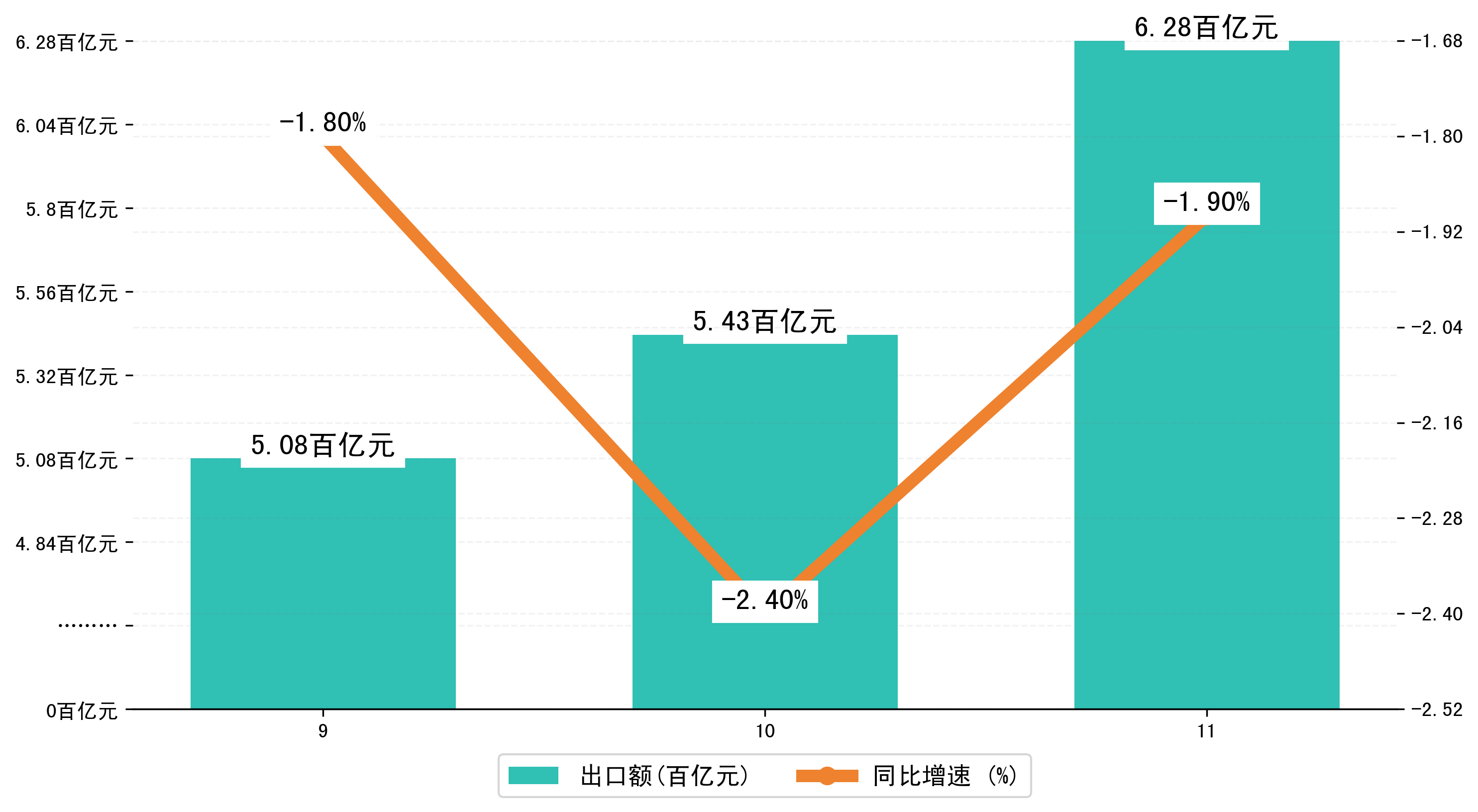 以人民币计,2023年11月四川省出口额为627,9163.463万元,相比上月增加了84,5295.0641万元;相比上年同期增加了8,3700.3565万元,同比减少了-1.90%。