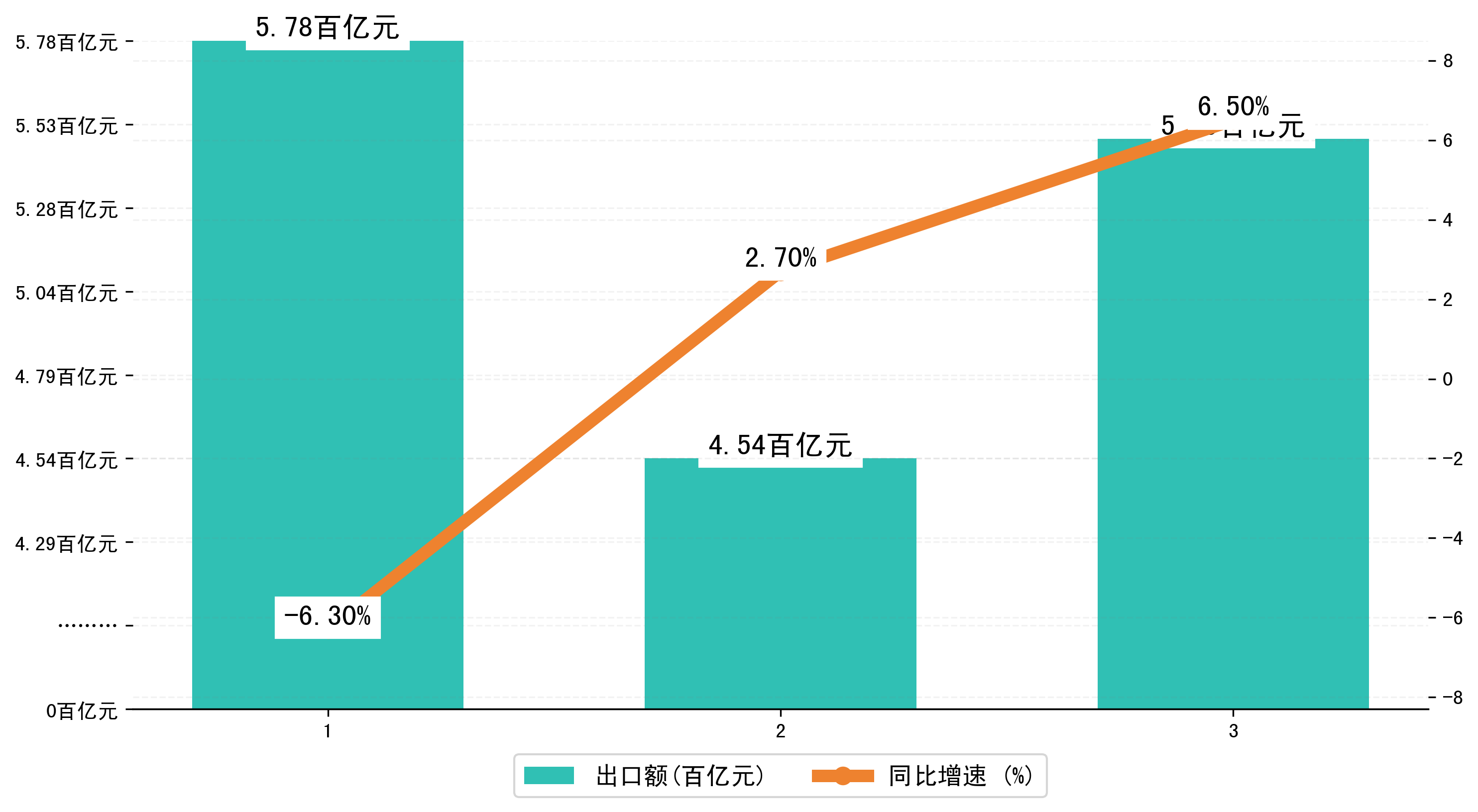 以人民币计,2025年3月四川省出口额为548,7756.9468万元,相比上月增加了94,8484.0067万元;相比上年同期增加了69,1020.1676万元,同比增加了6.50%。