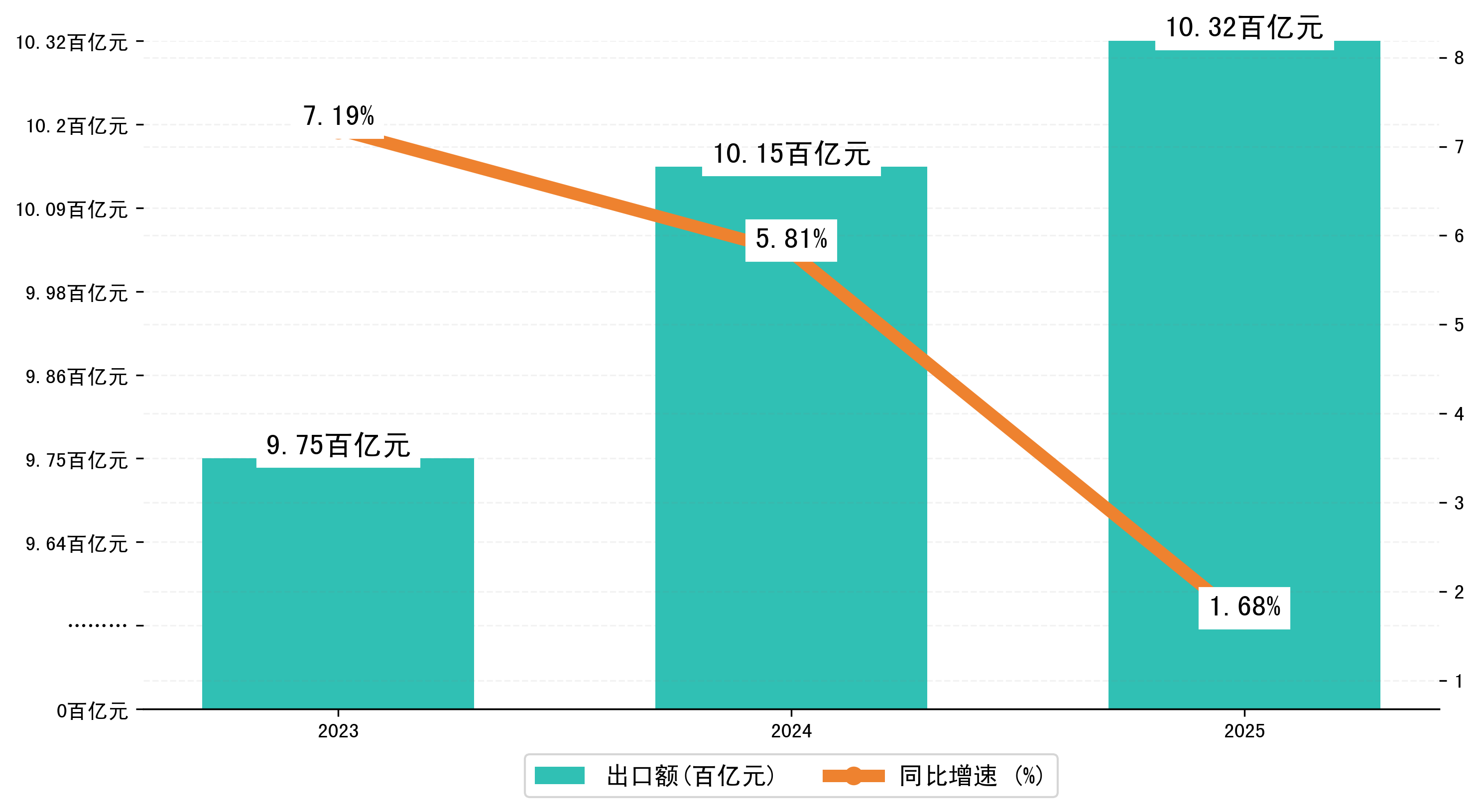 以人民币计,2025年1-2月四川省出口额为1031,7981.4313万元,相比上年同期增加了17,0838.9395万元,同比增加了2.70%。