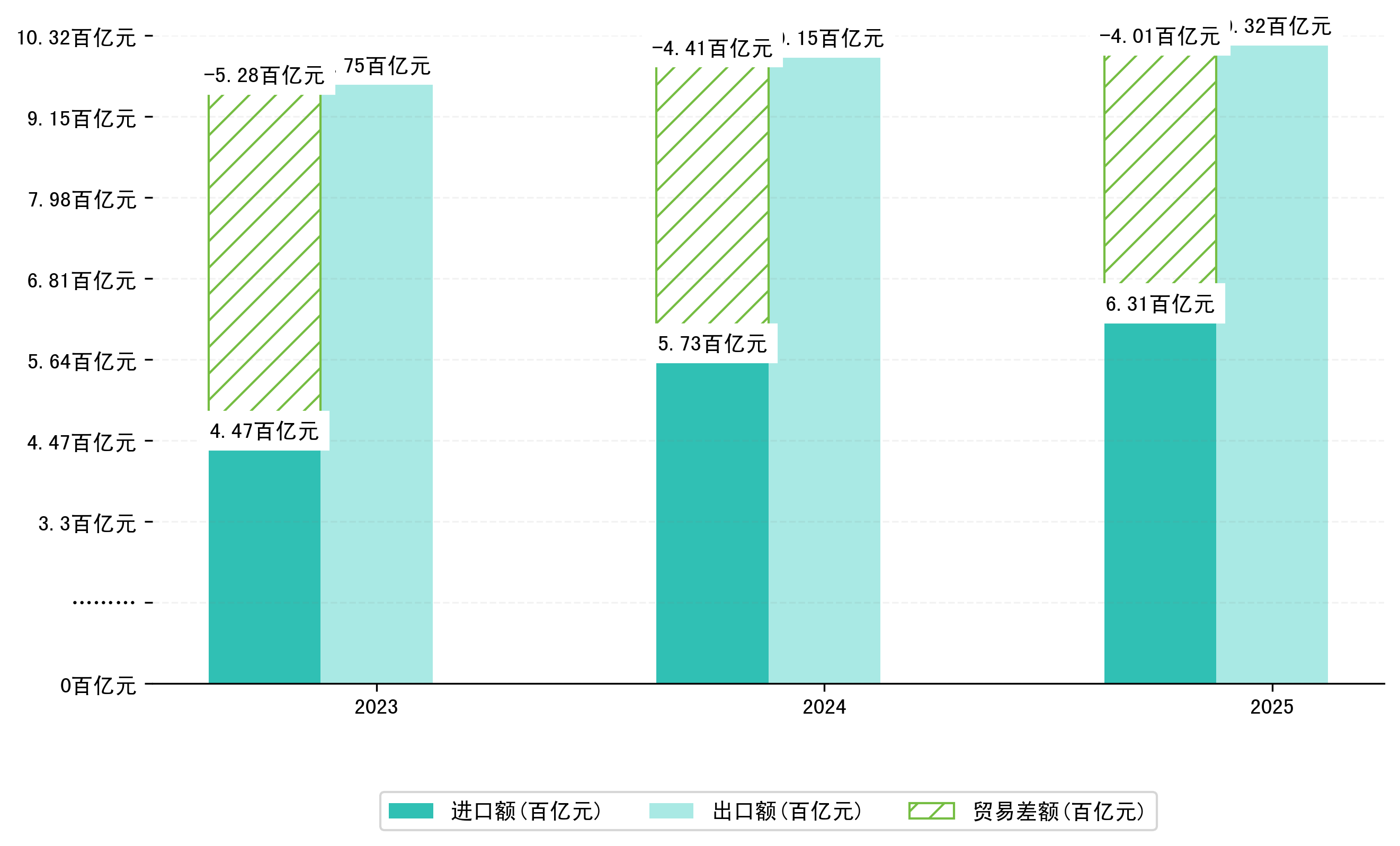 以人民币计,2025年2月四川省贸易差额为141,5375,8330万元(贸易顺差),相比上月减少了117,8333,4793万元,即16,3872,0948万美元;相比上年同期增加了11,5164,4871万元,同比增加8.86%。