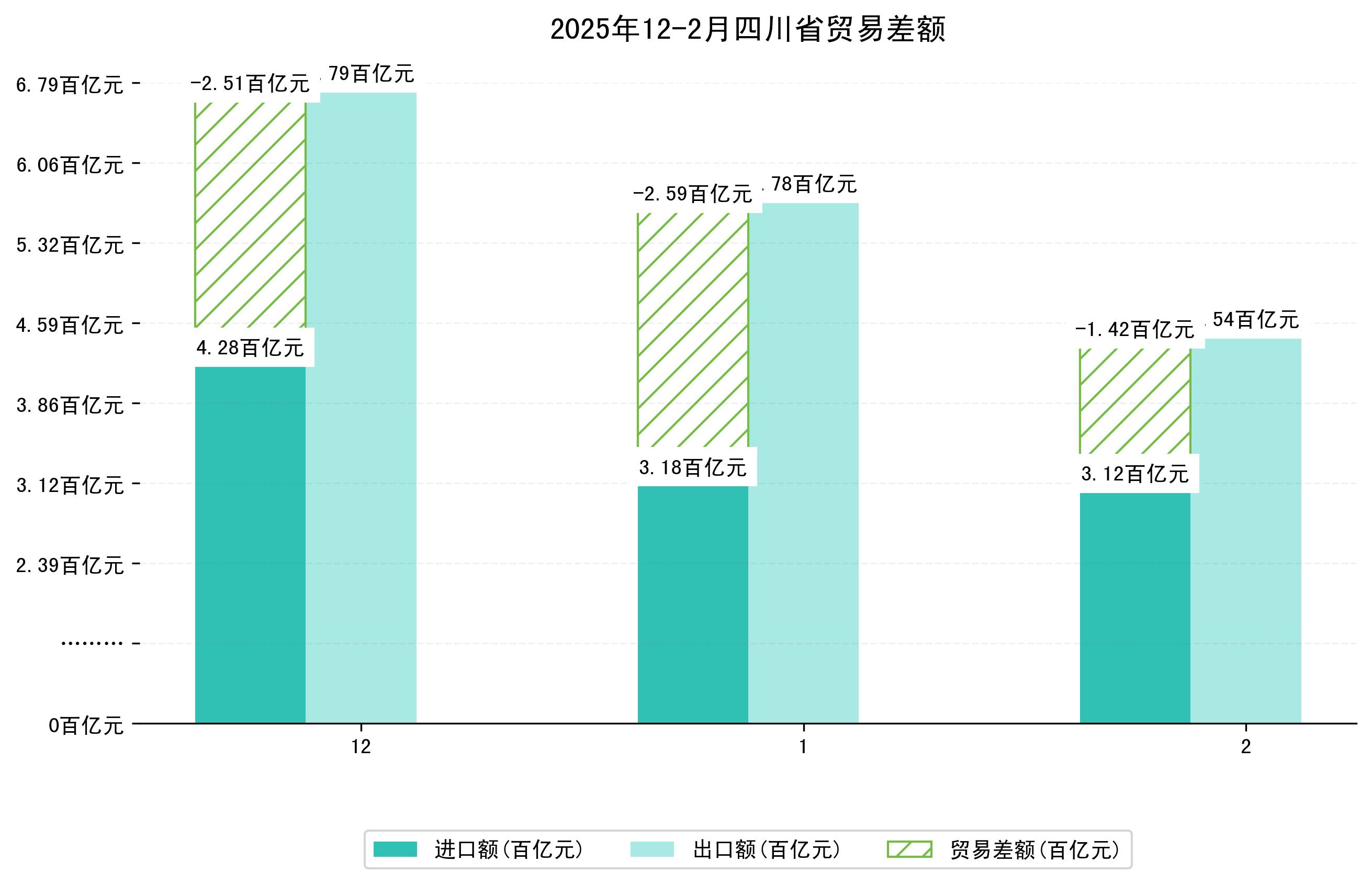 一、2025年2月四川省单月出口总额及进出口差额统计分析