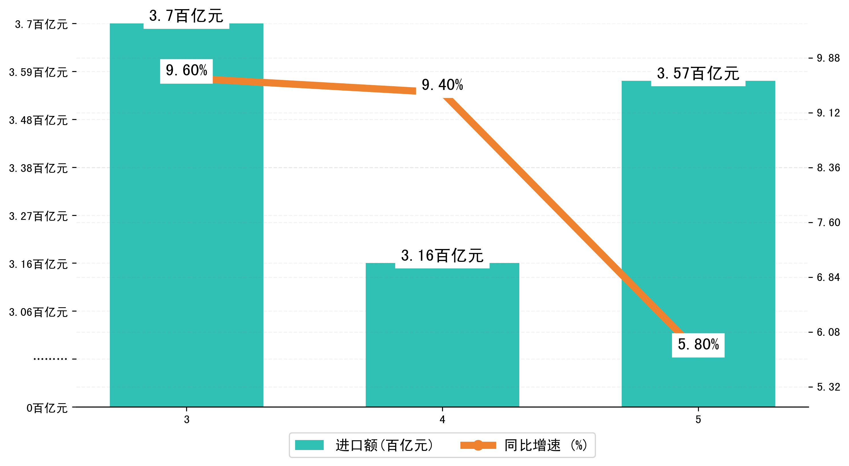 以人民币计,2025年5月四川省进口额为356,9004.2101万元,相比上月增加了40,4226.6377万元;相比上年同期减少了27,1349.4043万元,同比增加了5.80%。