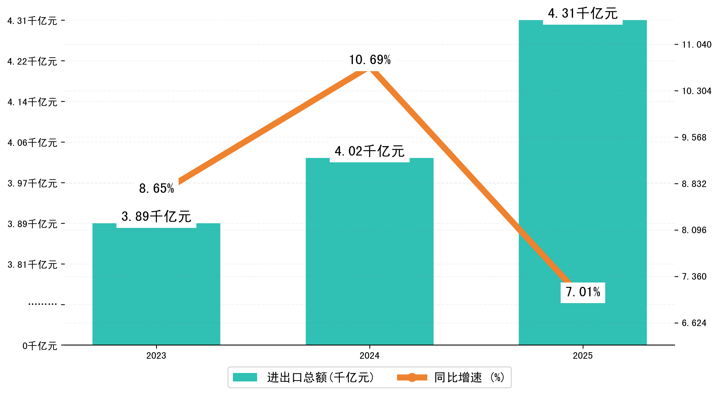 以人民币计,2025年1-5月四川省进出口总额为4305,2392.1143万元,相比上年同期增加了282,1179.851万元,同比增加了7.50%。