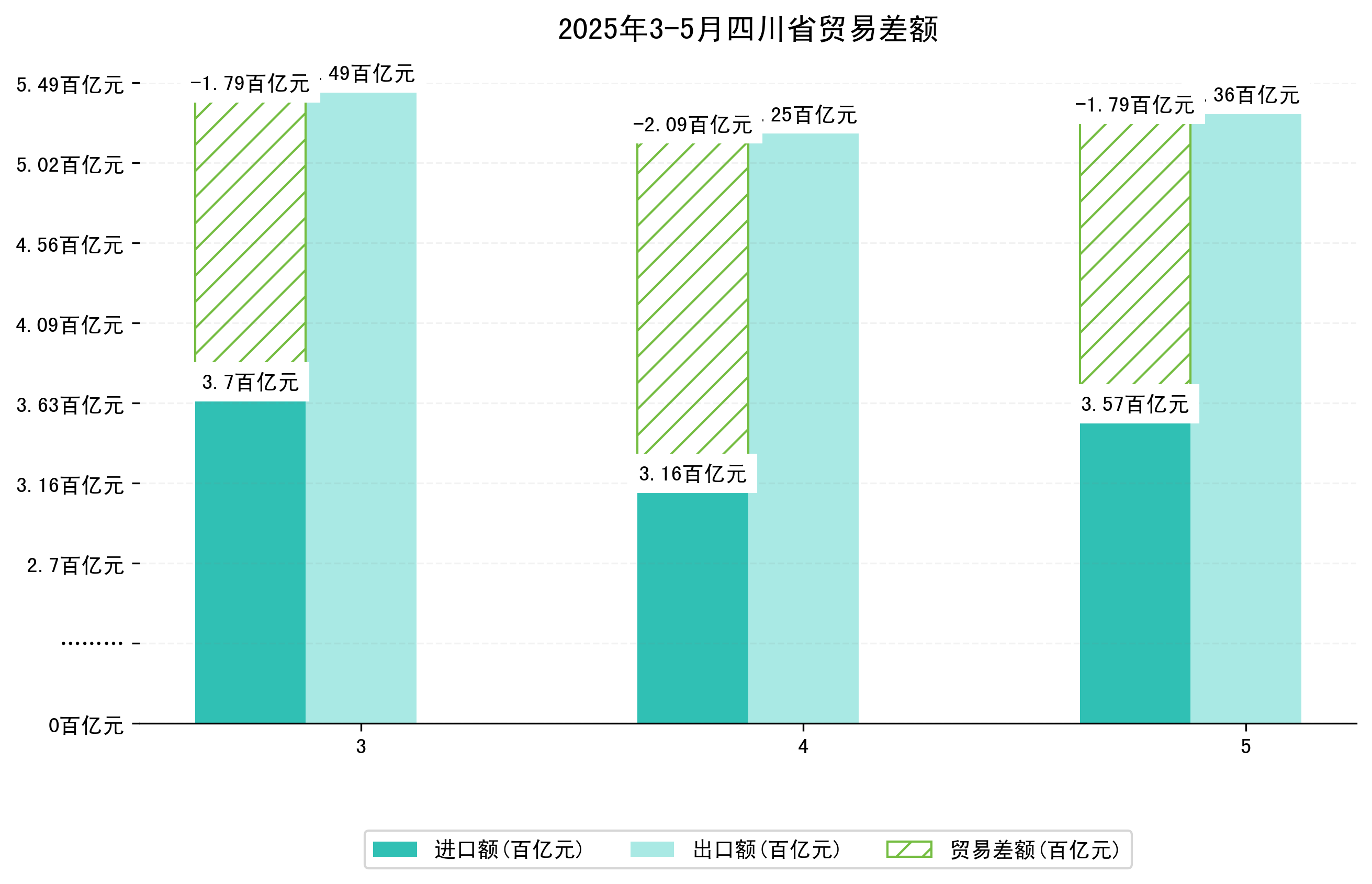 以美元计,2025年1-5月四川省贸易差额为133,3454,8131万美元(贸易顺差),相比上年同期增加了17,2523,6866万美元,同比增加14.86%。