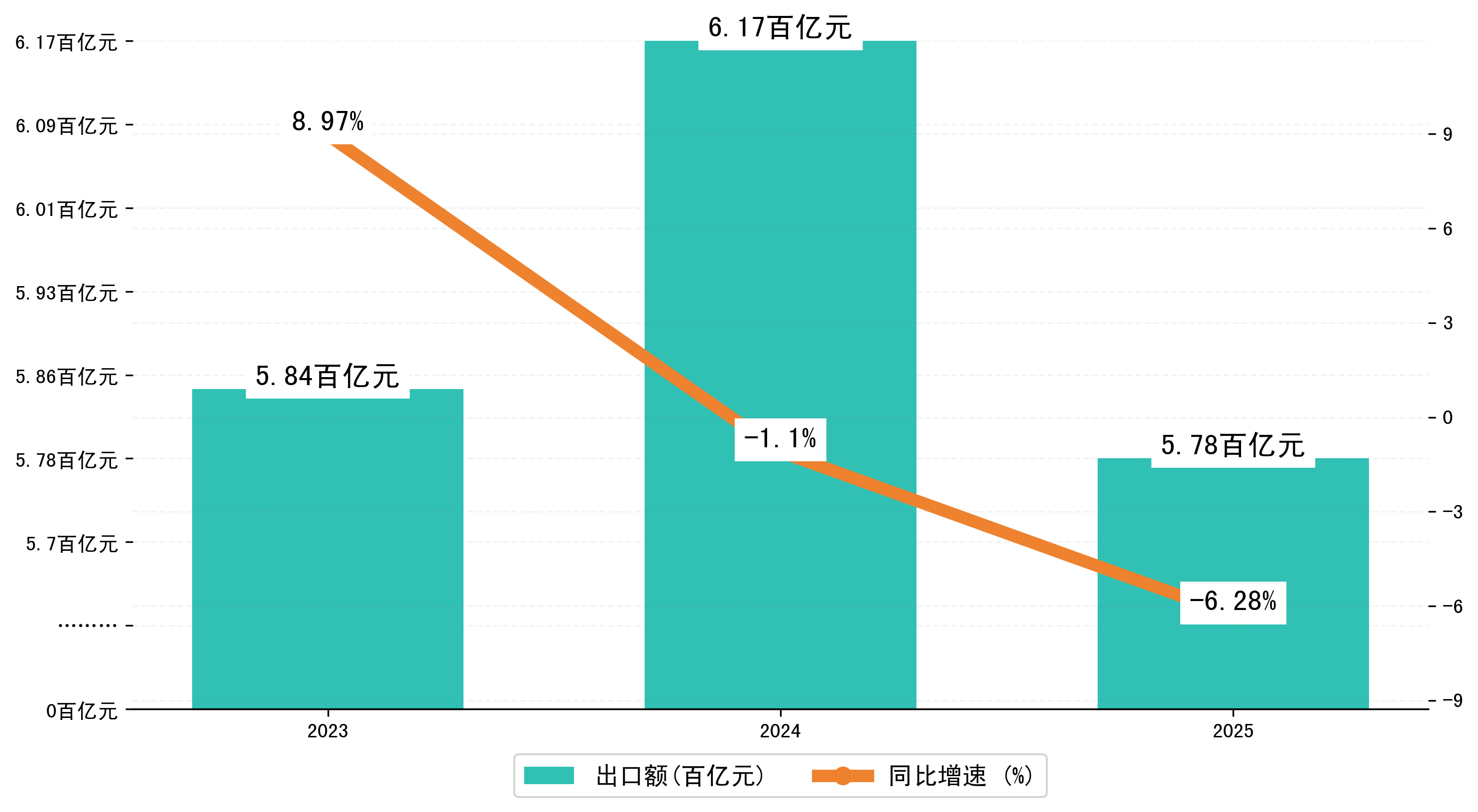 以人民币计,2025年1月四川省出口额为577,8708.4912万元,相比上月减少了101,2583.0452万元;相比上年同期减少了38,7441.9543万元,同比减少了-6.30%。