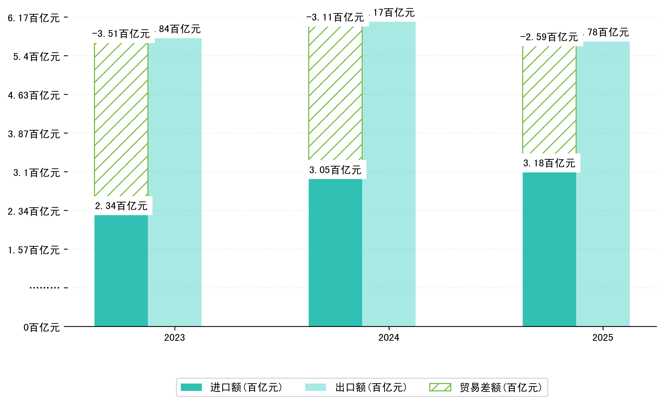 以人民币计,2025年1月四川省贸易差额为259,3709,3123万元(贸易顺差),相比上月增加了8,3465,5763万元,即1,0643,9339万美元;相比上年同期减少了52,0550,9828万元,同比减少-16.72%。