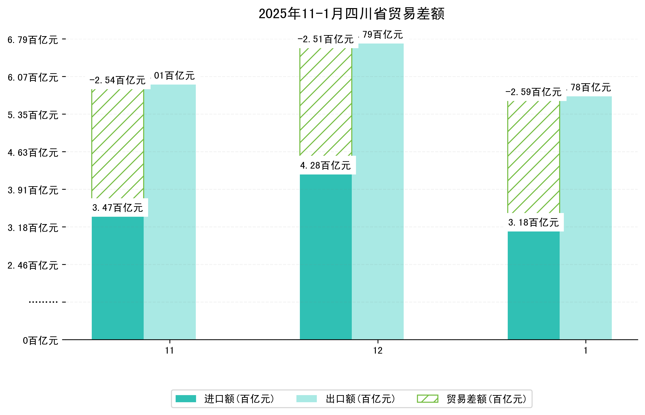 一、2025年1月四川省单月出口总额及进出口差额统计分析