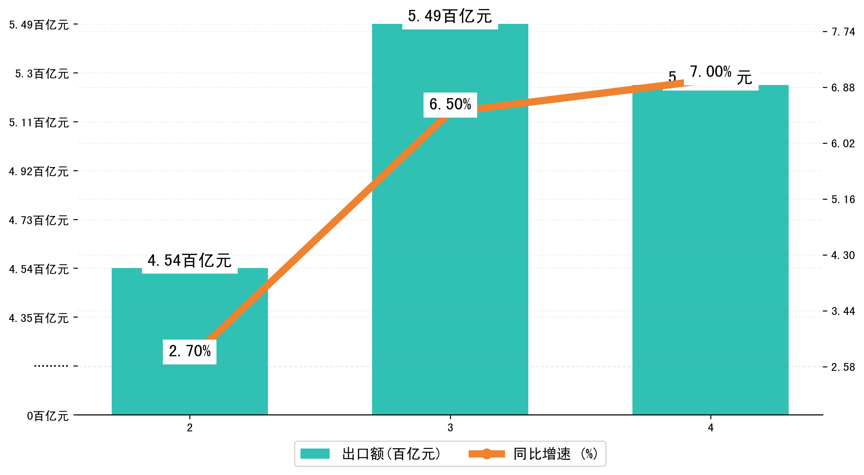 以人民币计,2025年1-4月四川省出口额为2102,9451.8017万元,相比上年同期增加了136,1379.8959万元,同比增加了7.00%。