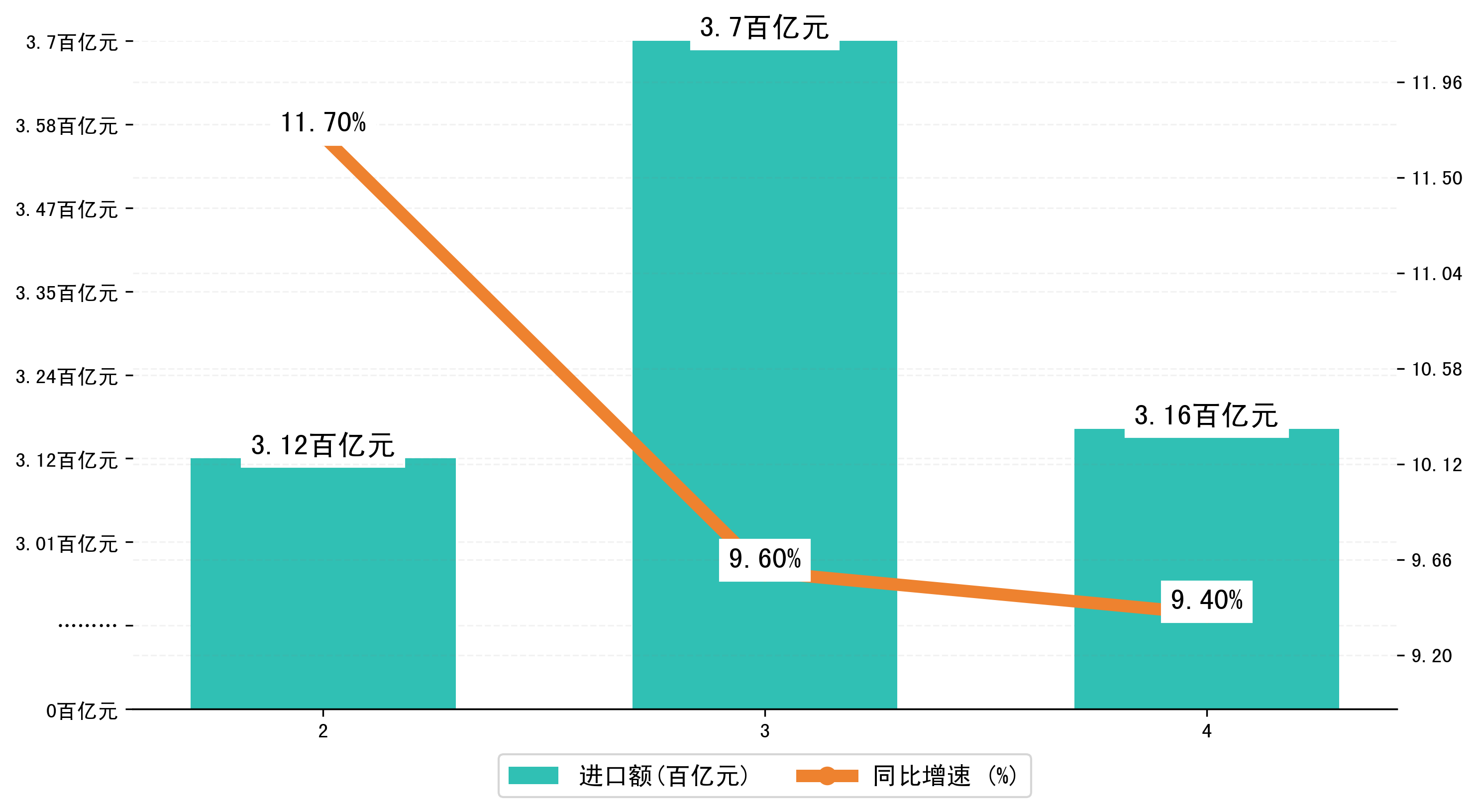 以人民币计,2025年1-4月四川省进口额为1316,4972.8513万元,相比上年同期增加了100,2654.7602万元,同比增加了9.40%。