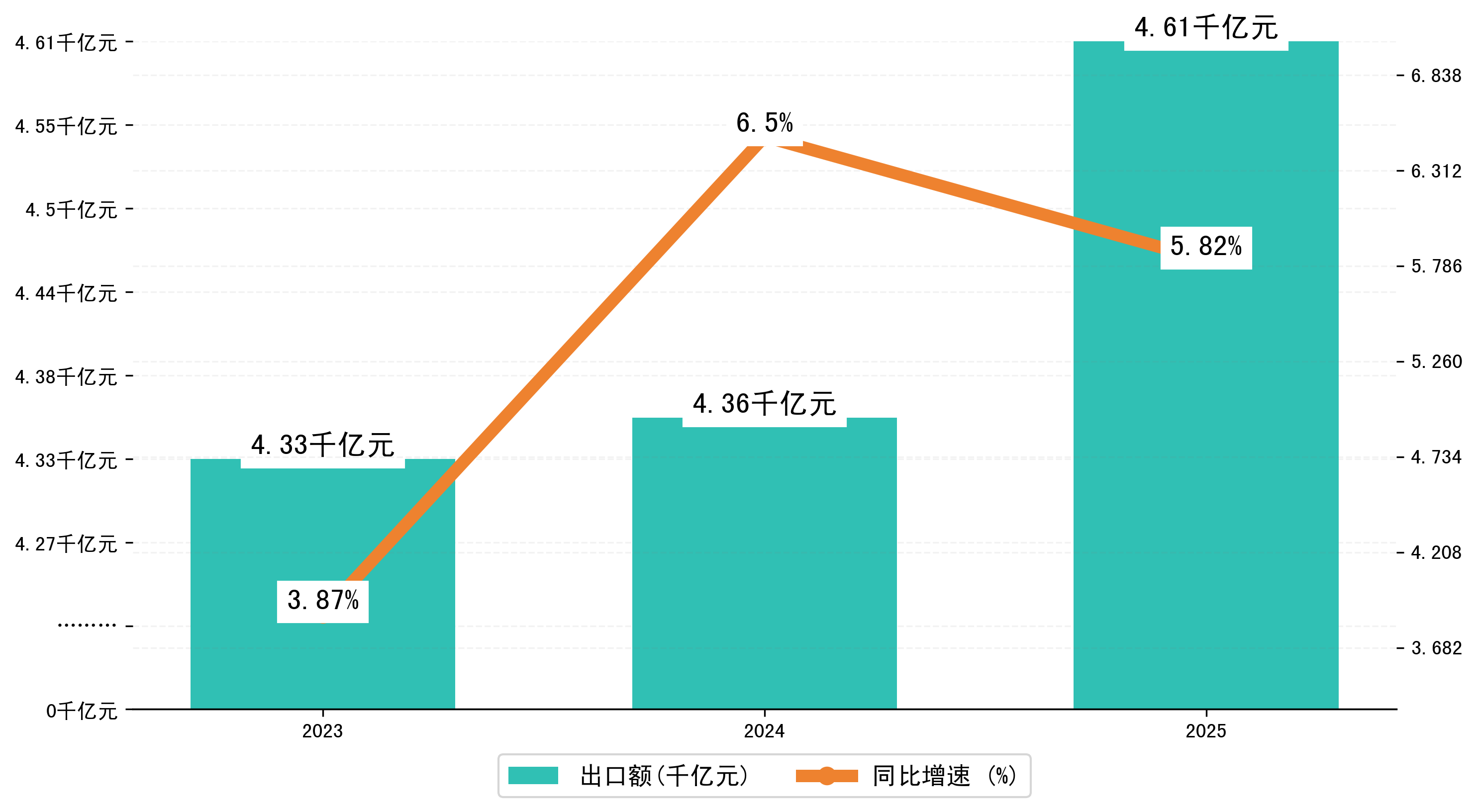 以人民币计,2025年1-9月四川省出口额为4610,0759.5993万元,相比上年同期增加了253,6858.8689万元,同比增加了5.80%。