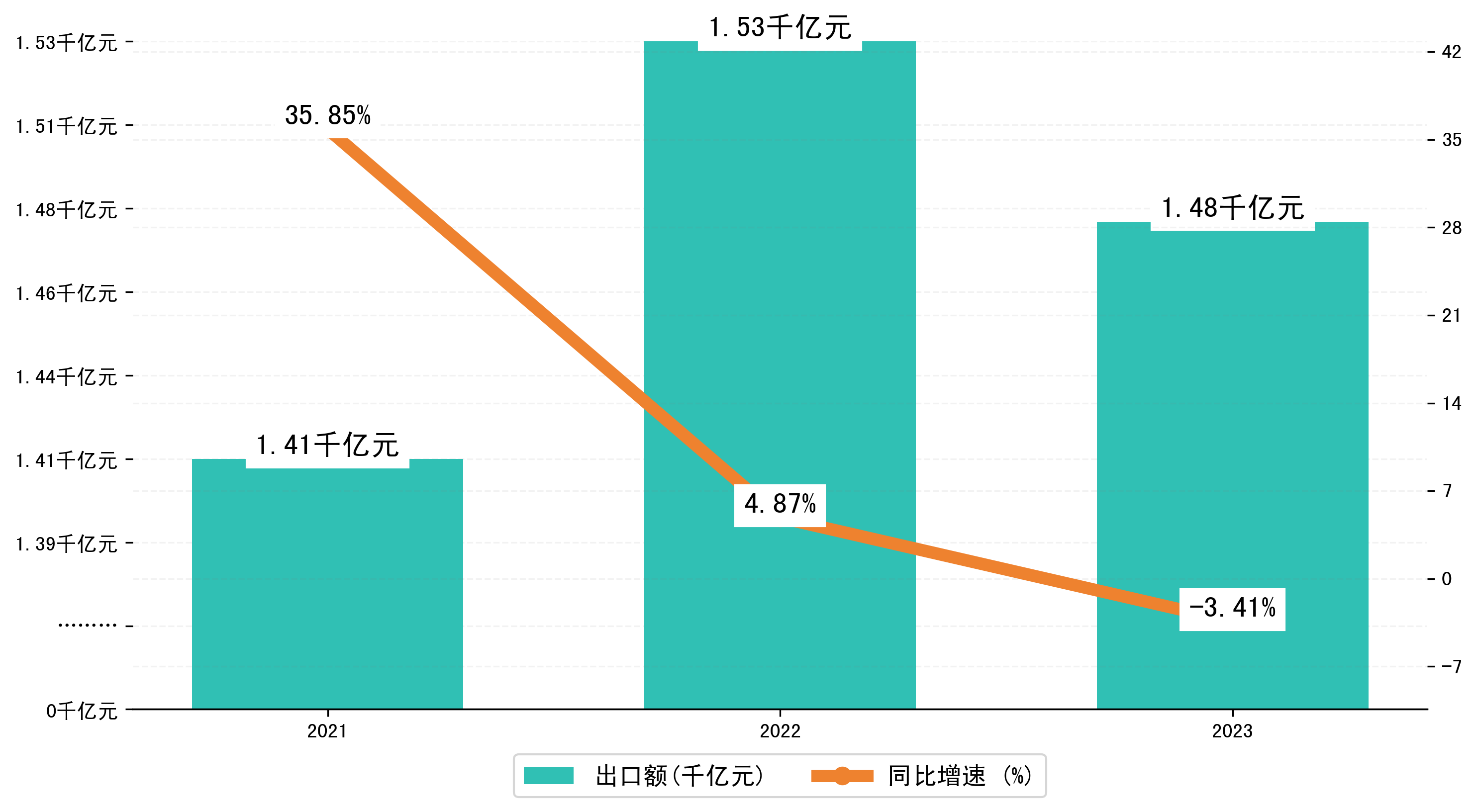 以人民币计,2023年1-5月天津市出口额为1480,9547.9044万元,相比上年同期减少了52,3188.6665万元,同比减少了-3.40%。