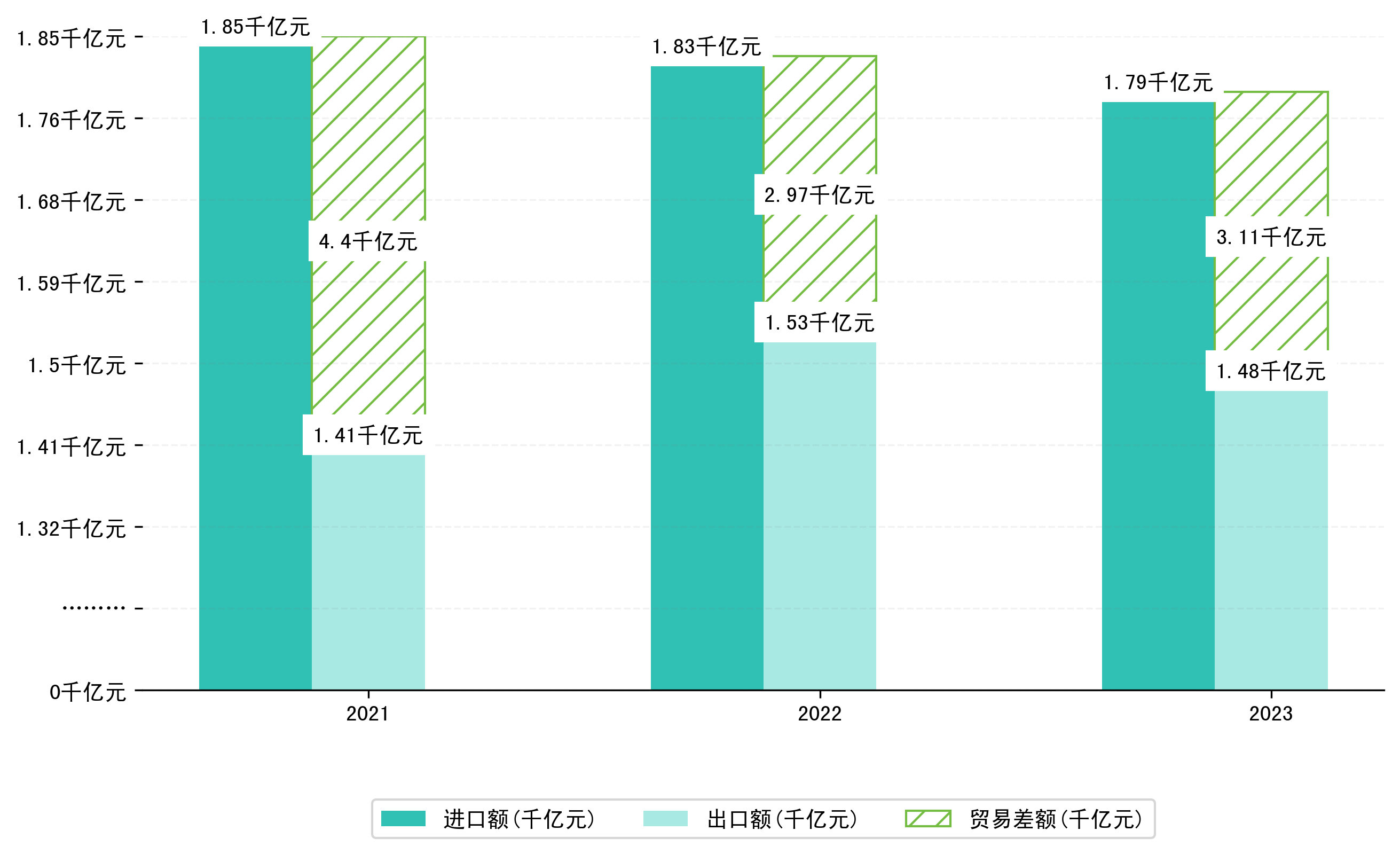 以人民币计,2023年1-5月天津市贸易差额为311,2438,2931万元(贸易逆差),相比上年同期减少了14,1002,0652万元,同比减少4.75%。