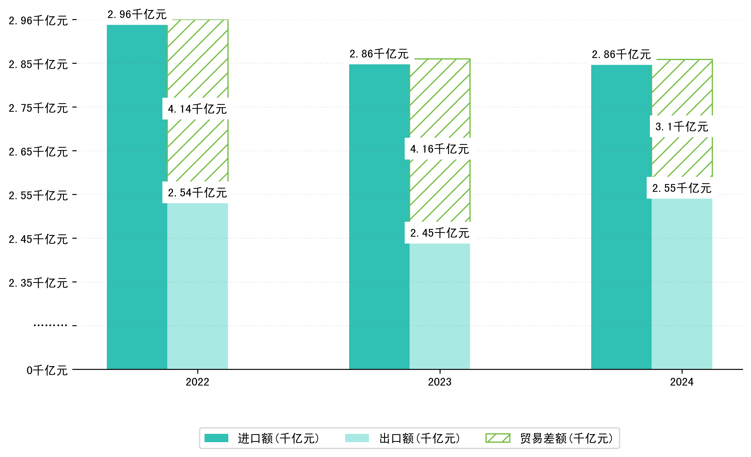 以人民币计,2024年1-8月天津市贸易差额为310,1951,2883万元(贸易逆差),相比上年同期增加了105,4888,6345万元,同比增加-25.38%。