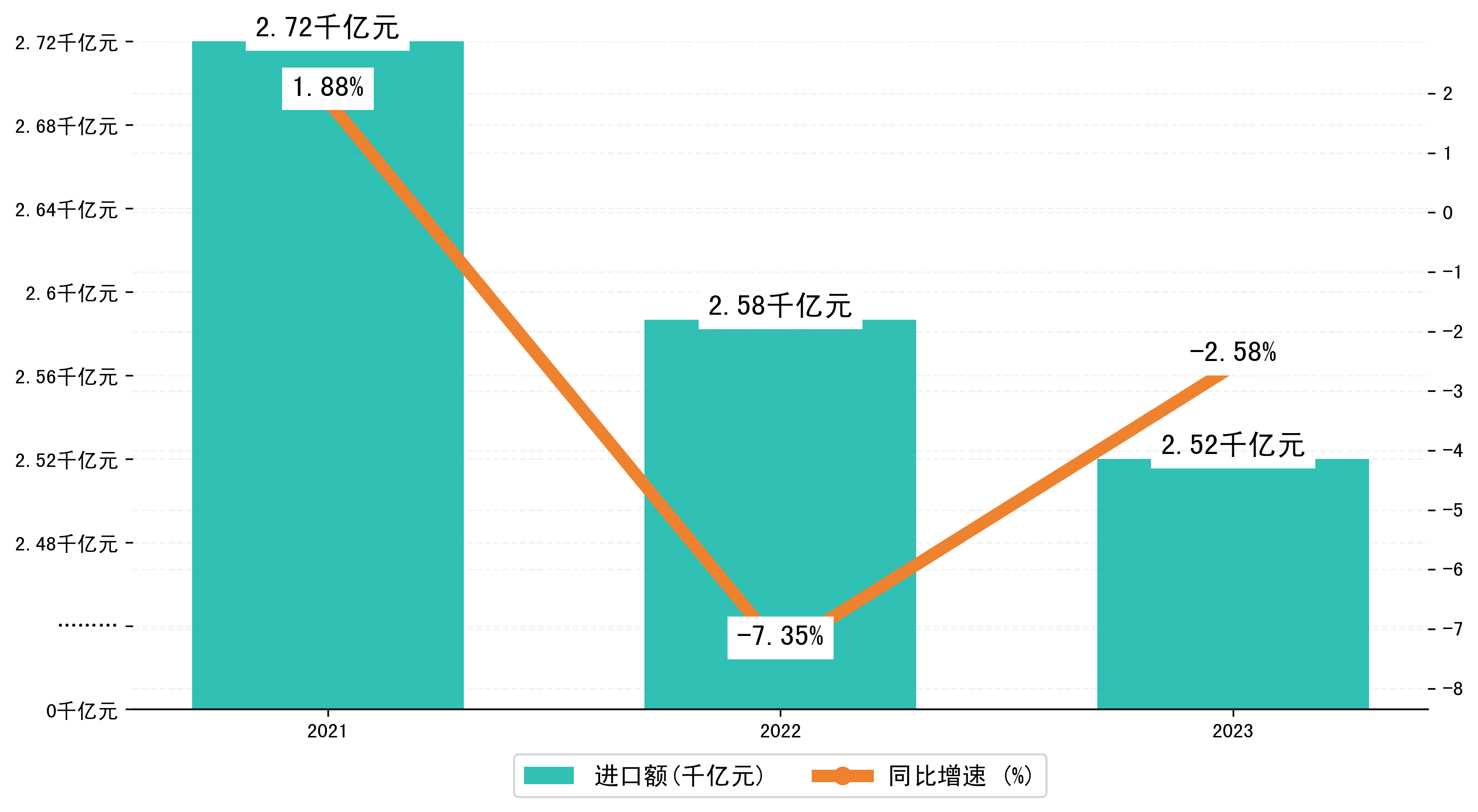 以人民币计,2023年1-7月天津市进口额为2515,6632.6263万元,相比上年同期减少了66,5376.4117万元,同比减少了-2.70%。