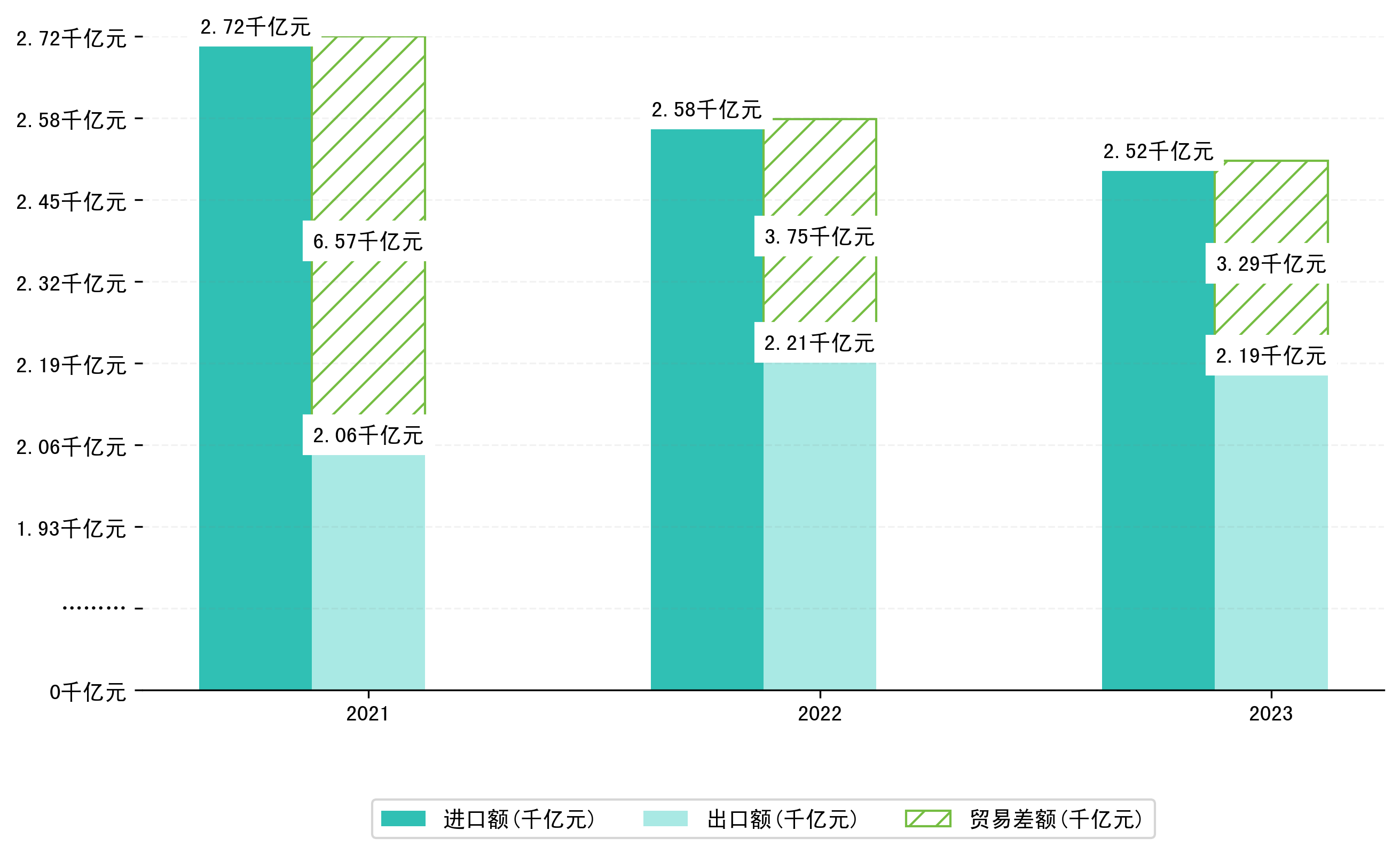 以人民币计,2023年1-7月天津市贸易差额为329,4493,8812万元(贸易逆差),相比上年同期增加了45,8946,6476万元,同比增加-12.23%。