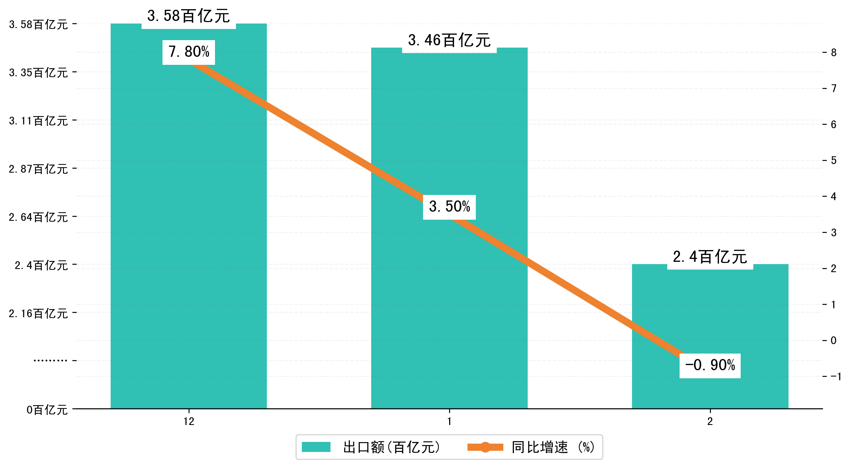 以美元计,2025年1-2月天津市出口额为81,5703.546万美元,相比上年同期减少了1,6954.6172万美元,同比减少-2.00%。