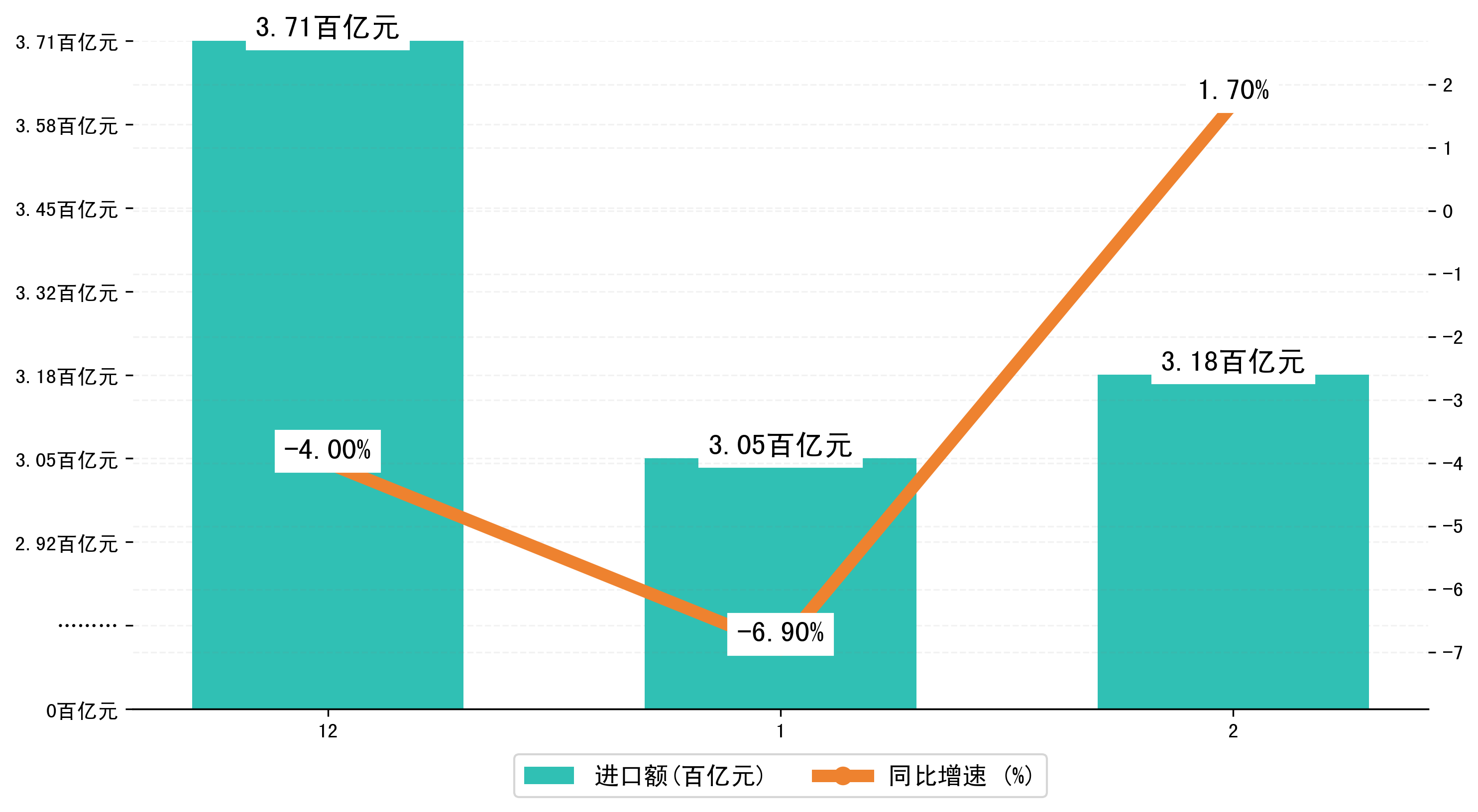 以美元计,2025年1-2月天津市进口额为86,7680.5848万美元,相比上年同期增加了1985.1297万美元,同比增加0.50%。