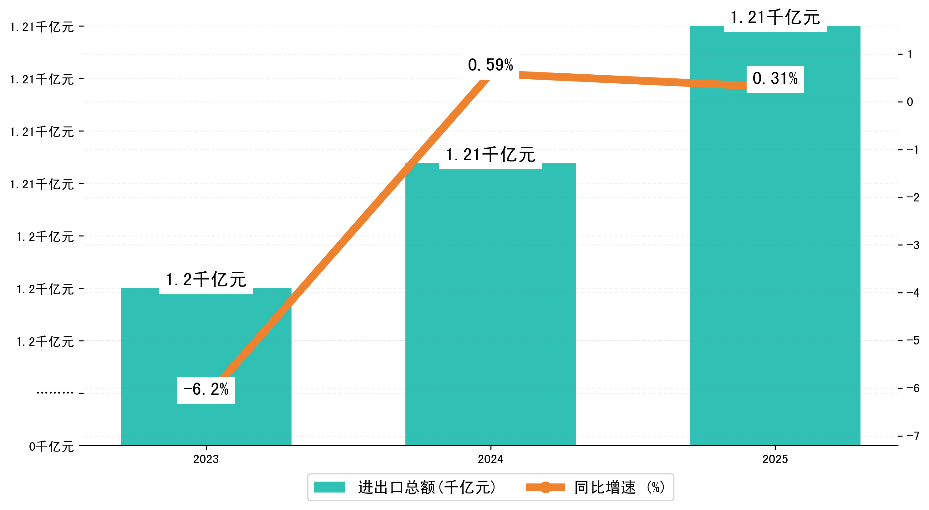 以人民币计,2025年1-2月天津市进出口总额为1209,9820.3328万元,相比上年同期增加了3,7032.0191万元,同比增加了0.40%。