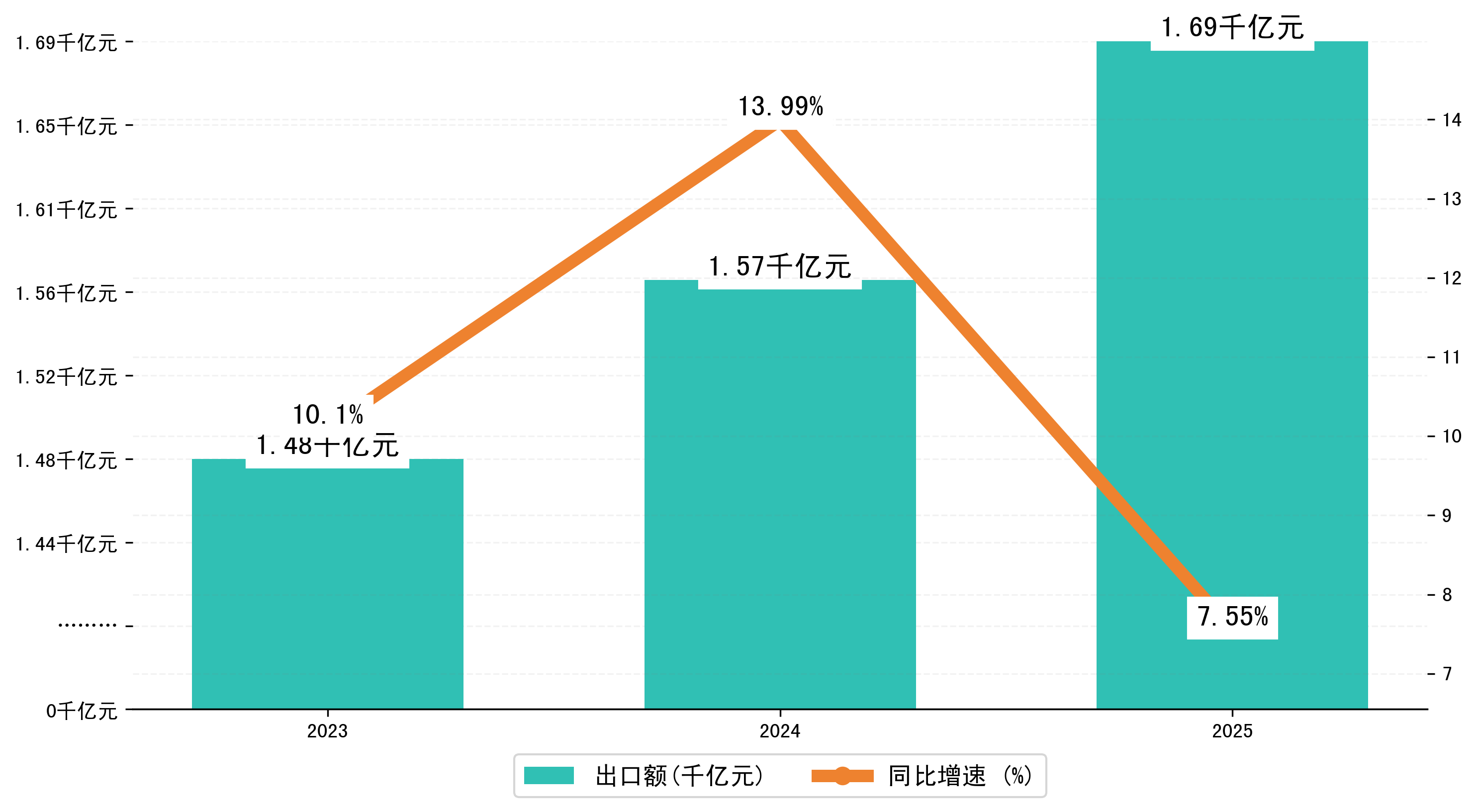 以人民币计,2025年1-5月天津市出口额为1688,1567.6276万元,相比上年同期增加了118,5526.8031万元,同比增加了7.50%。