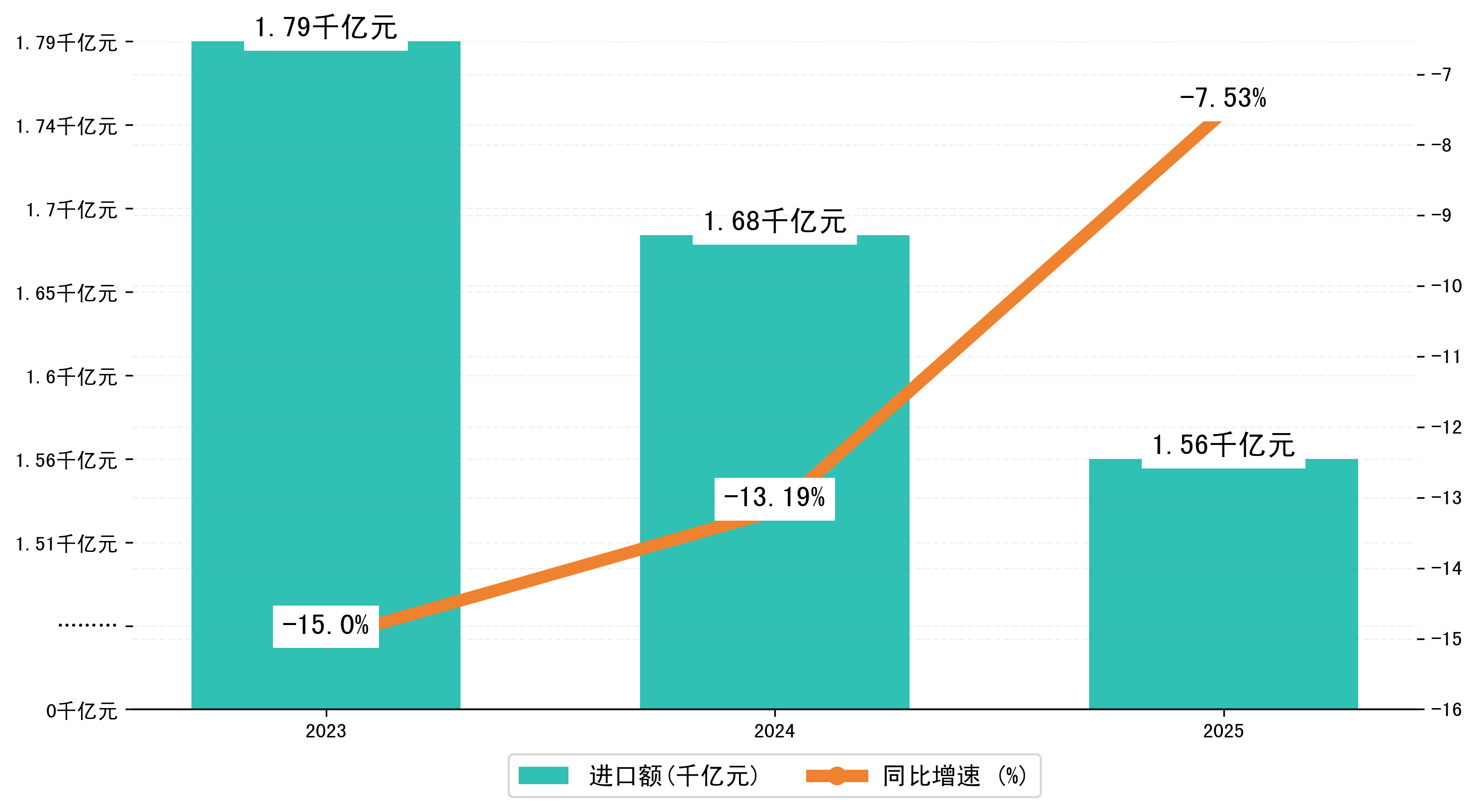 以人民币计,2025年1-5月天津市进口额为1555,8179.7575万元,相比上年同期减少了126,6574.5878万元,同比减少了-8.20%。