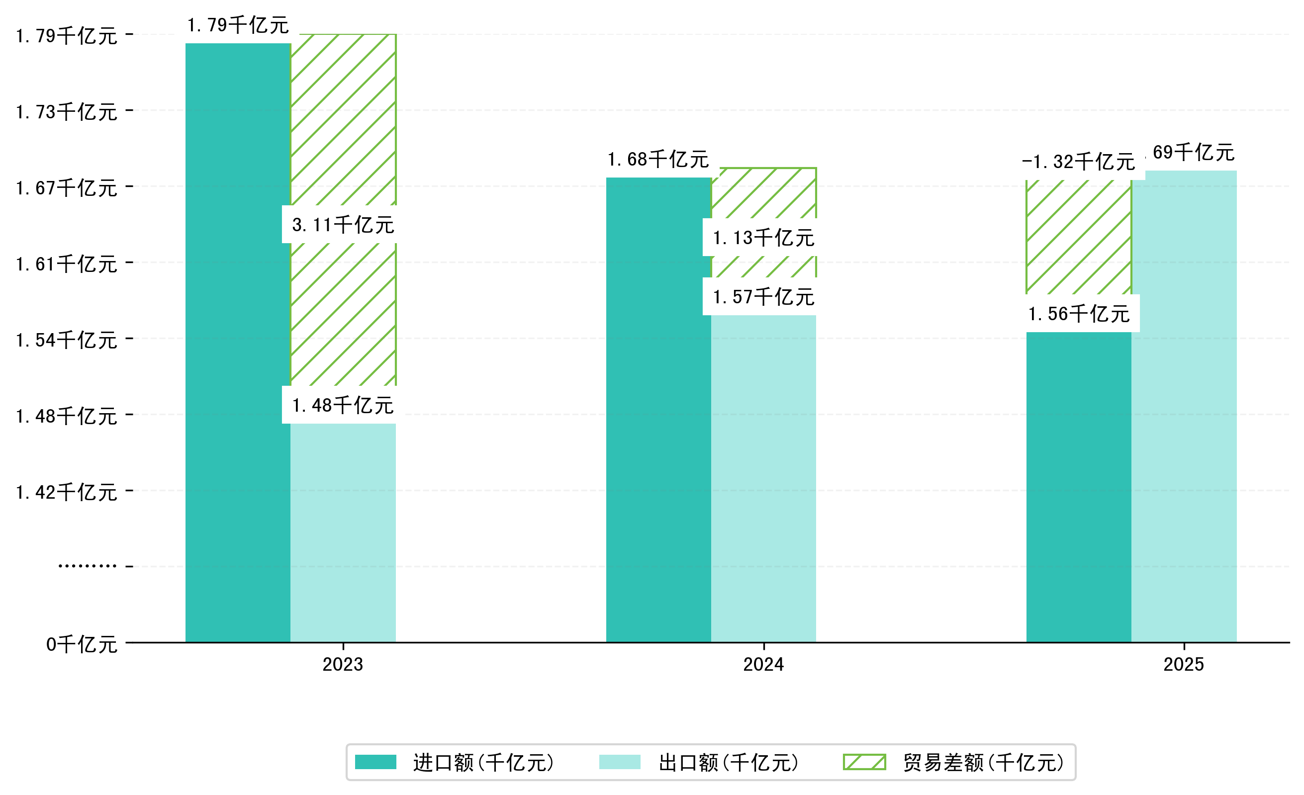 以人民币计,2025年1-5月天津市贸易差额为132,3387,8701万元(贸易顺差),相比上年同期增加了245,2101,3909万元,同比增加-217.25%。